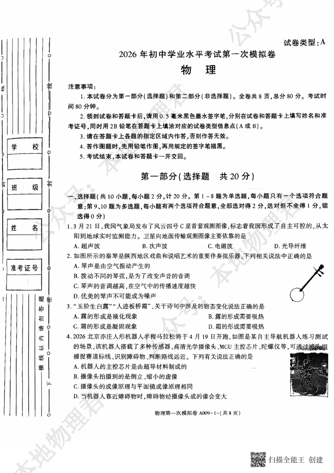 2026年咸阳市秦都区一模物理试卷及解析