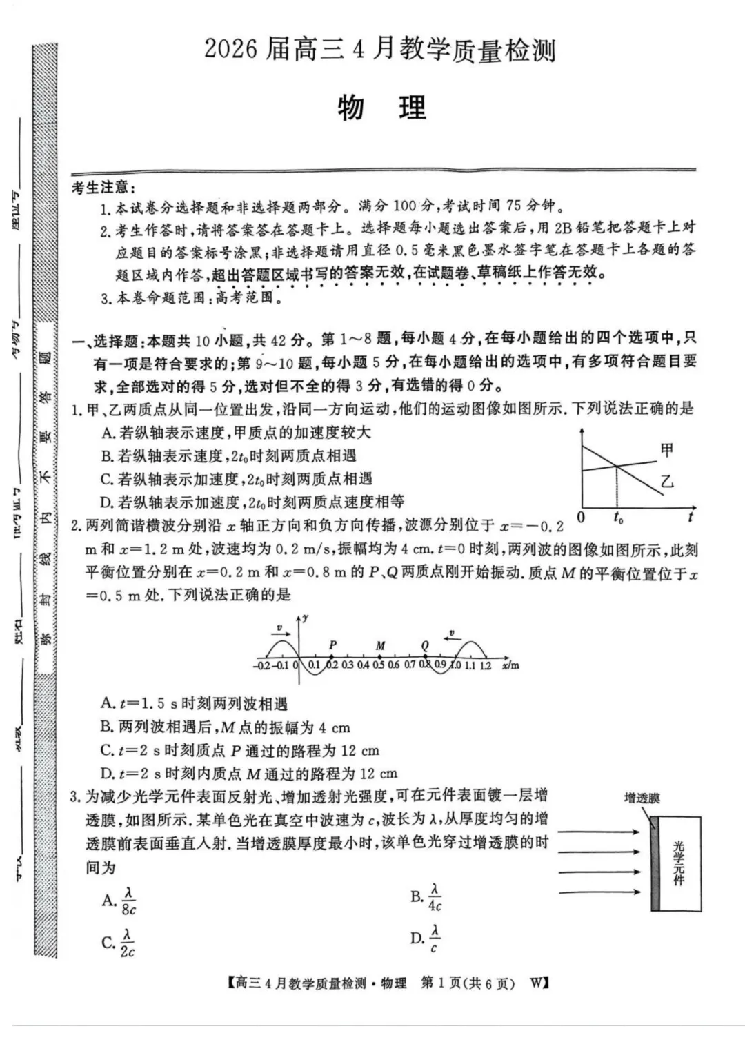 作者寄语:2026届皖南八校高三下学期三模物理试卷+答案,7天有效领取,手慢无!!!