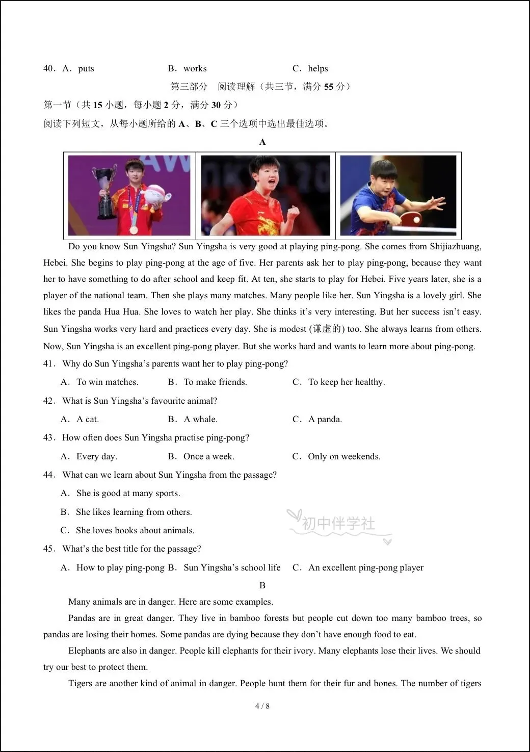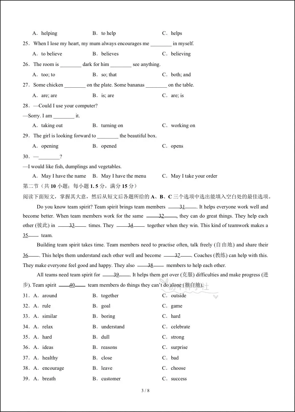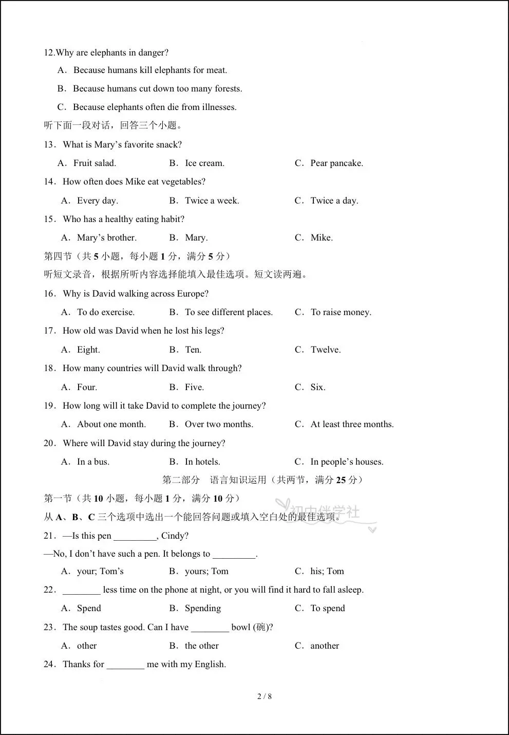 2026春人教版七年级下册英语期中试卷(有答案),电子版可打印可下载!①:点一点右下角的“赞”和“在看”,感谢