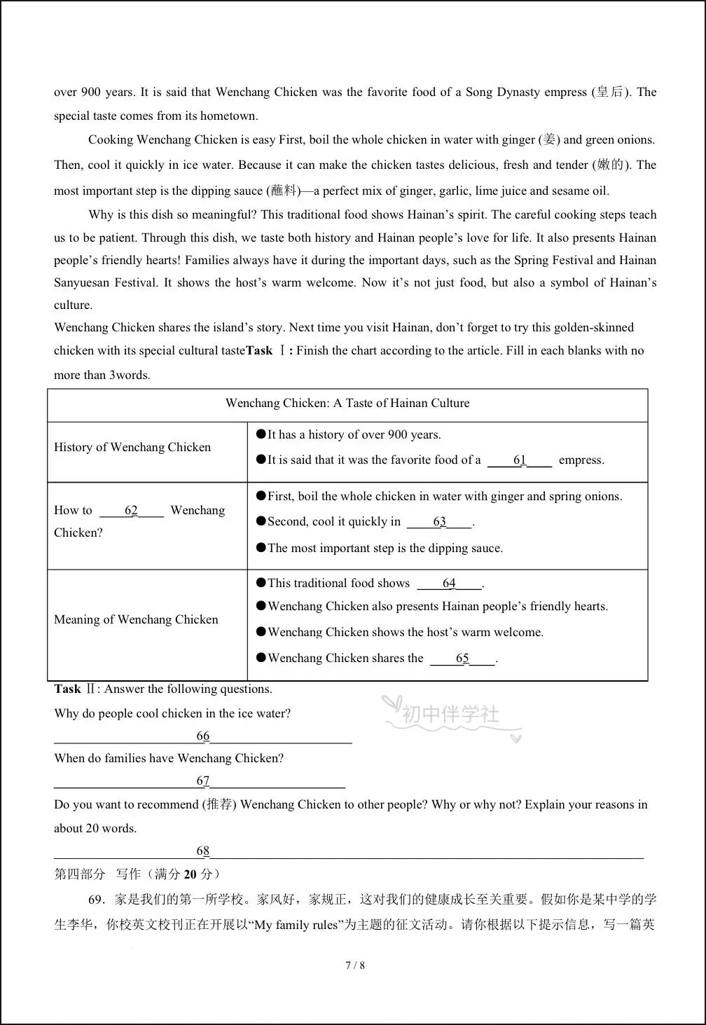 !②:在公众号对话框回复:七年级
