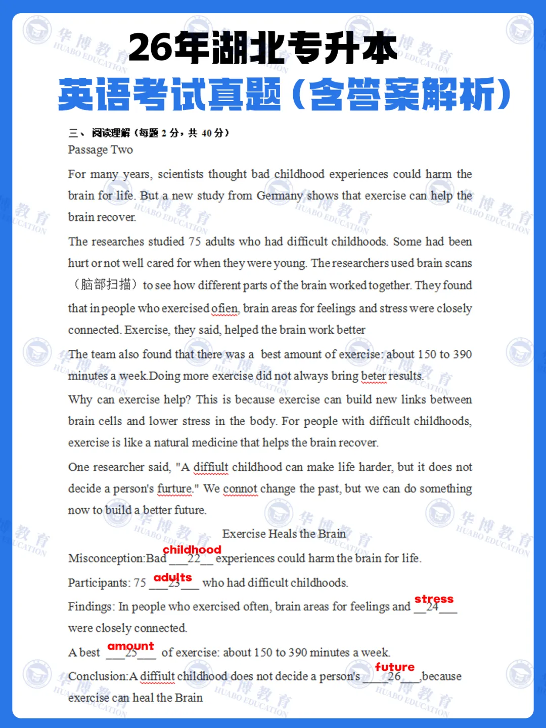2026年湖北专升本英语试卷! 🎉