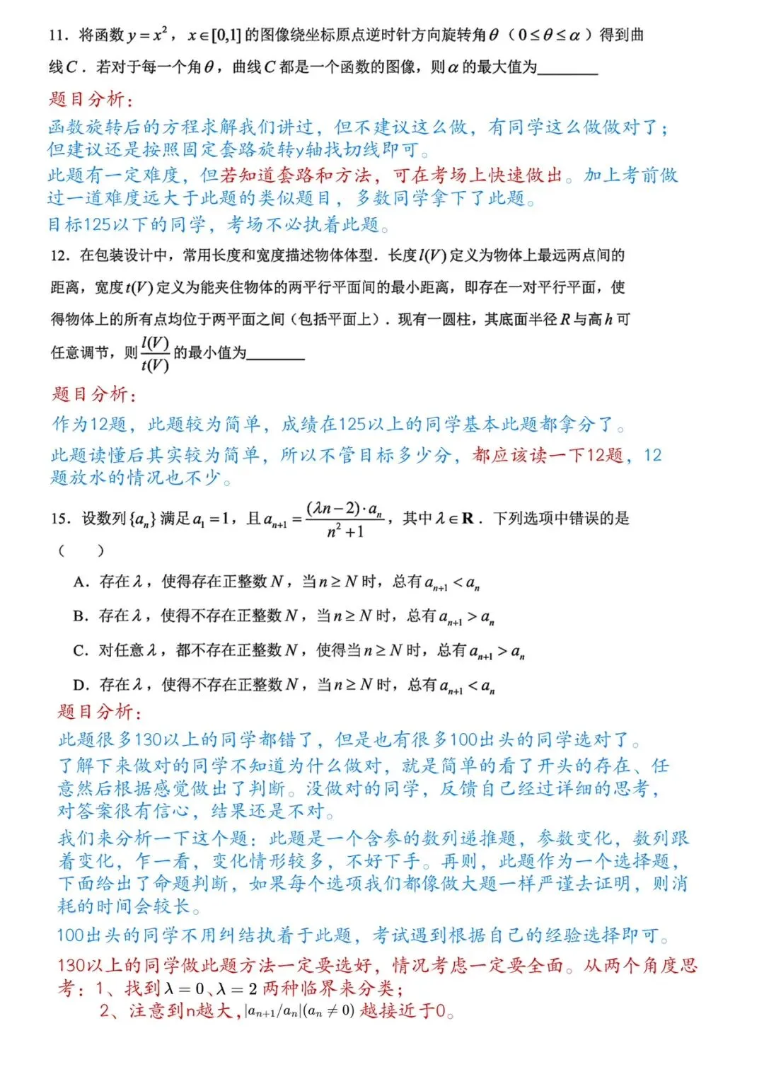 我再重复一遍,如果你在平时的考试中,那些最难的15分,你从来都没有因为会做拿到分过,我劝你高考不要花太多时间在这个上面。当然,一些难度很大但可以懵答案的例外,我主要想说,在这种上面别投入太多时间。