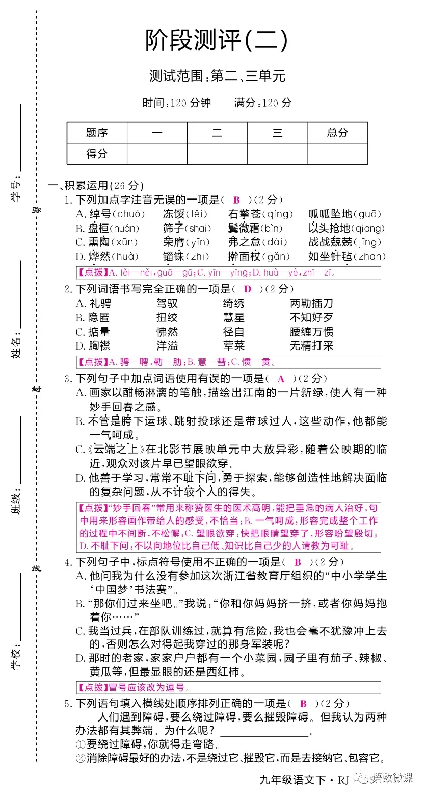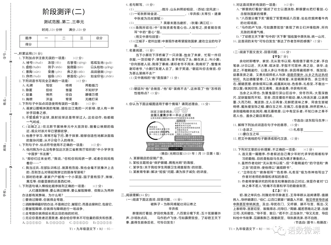 冬冬老师今天给大家整理了统编版语文九年级(下册)第二次月考试卷(含答案),请各位家长打印给孩子练练,更好的巩固所学的知识点!