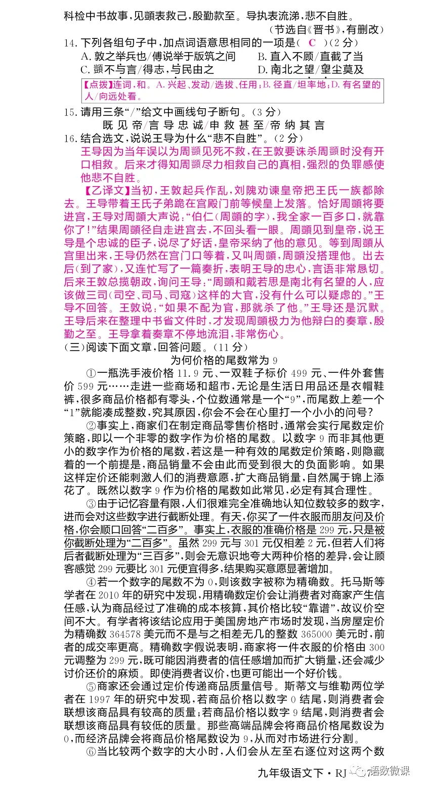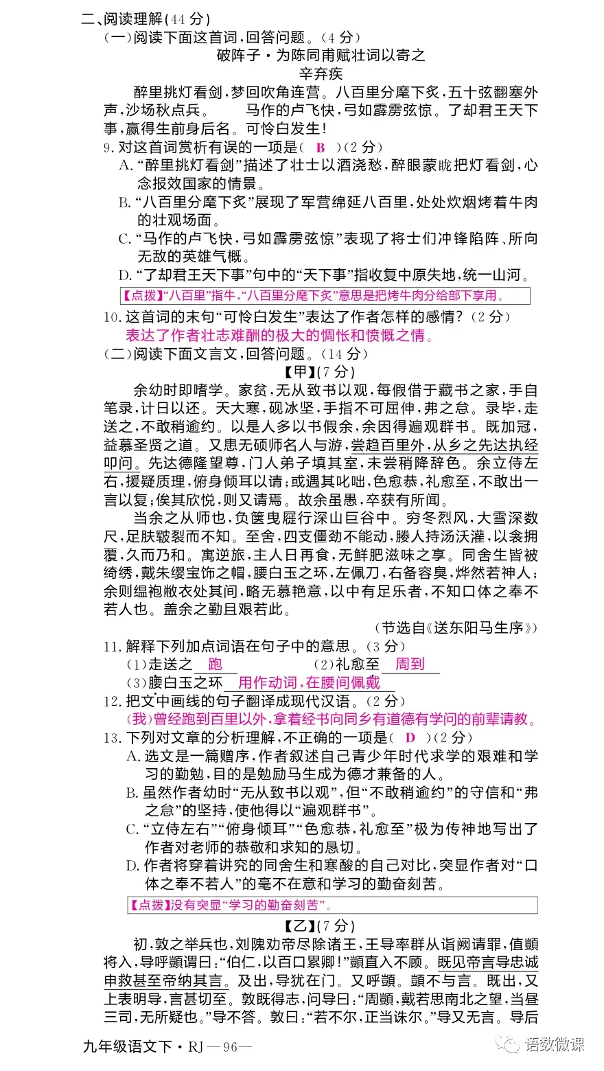 阅读 9 鱼我所欲也/《孟子》 10* 唐雎不辱使命/《战国策》 11 送东阳马生序/宋濂 12 词四首 写作 名著导读 《儒林外史》:讽刺作品的阅读 课外古诗词诵读(一) 定风波(莫听穿林打叶声)/苏轼 临江仙·夜登小阁,忆洛中旧游/陈与义 太常引·建康中秋夜为吕叔潜赋/辛弃疾 第三单元知识点