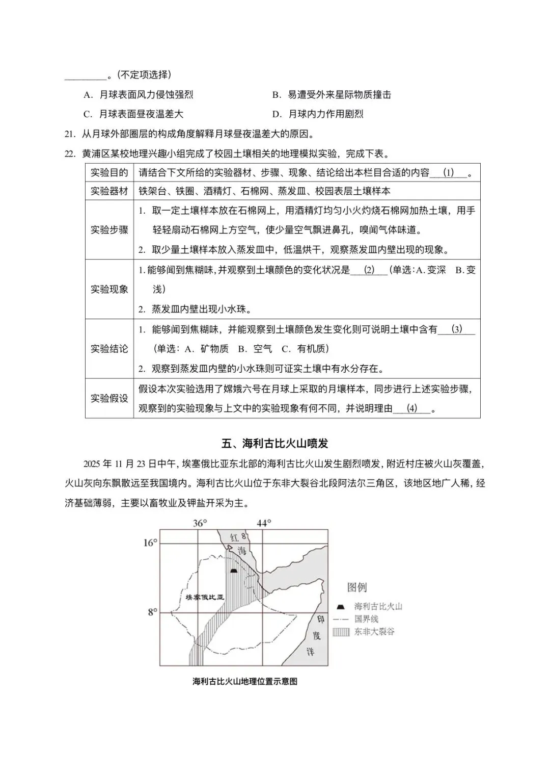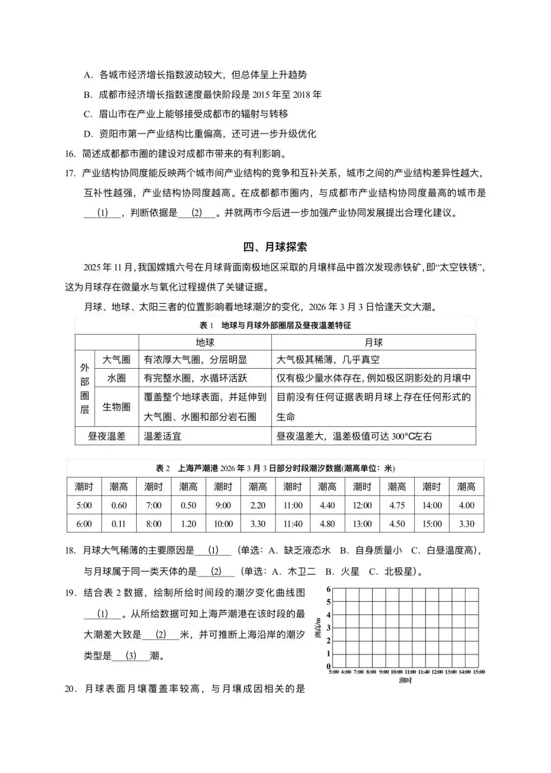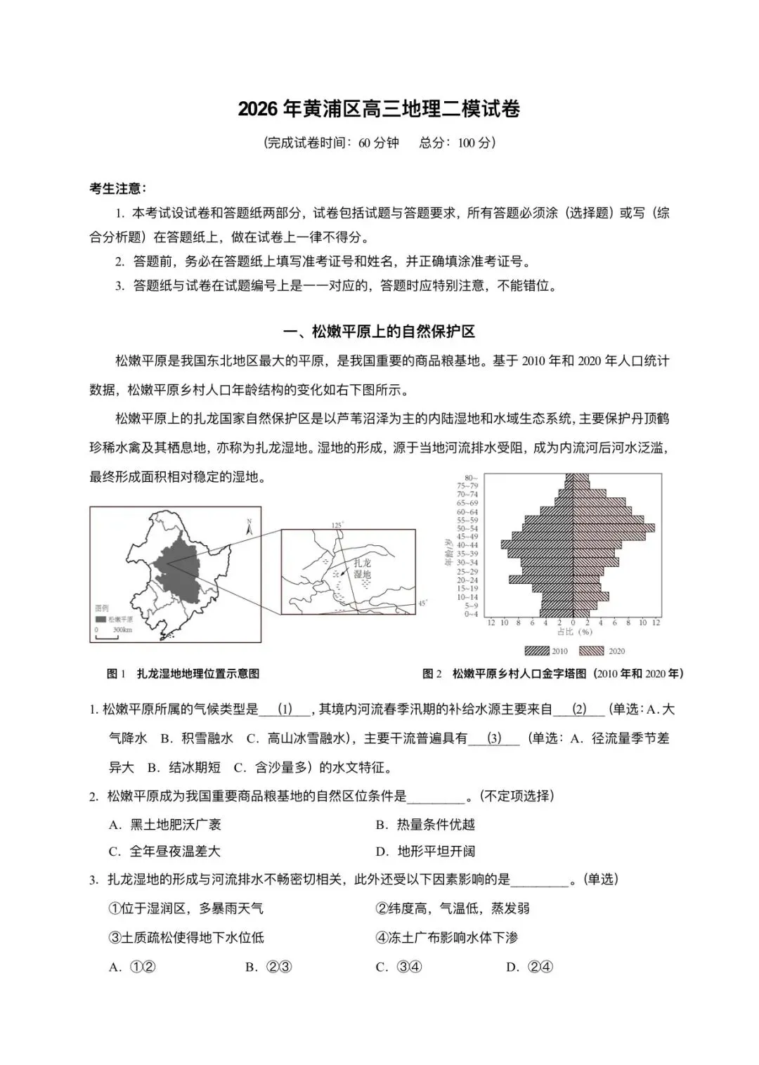 >上海市黄浦区2026届高三地理二模试卷及答案
