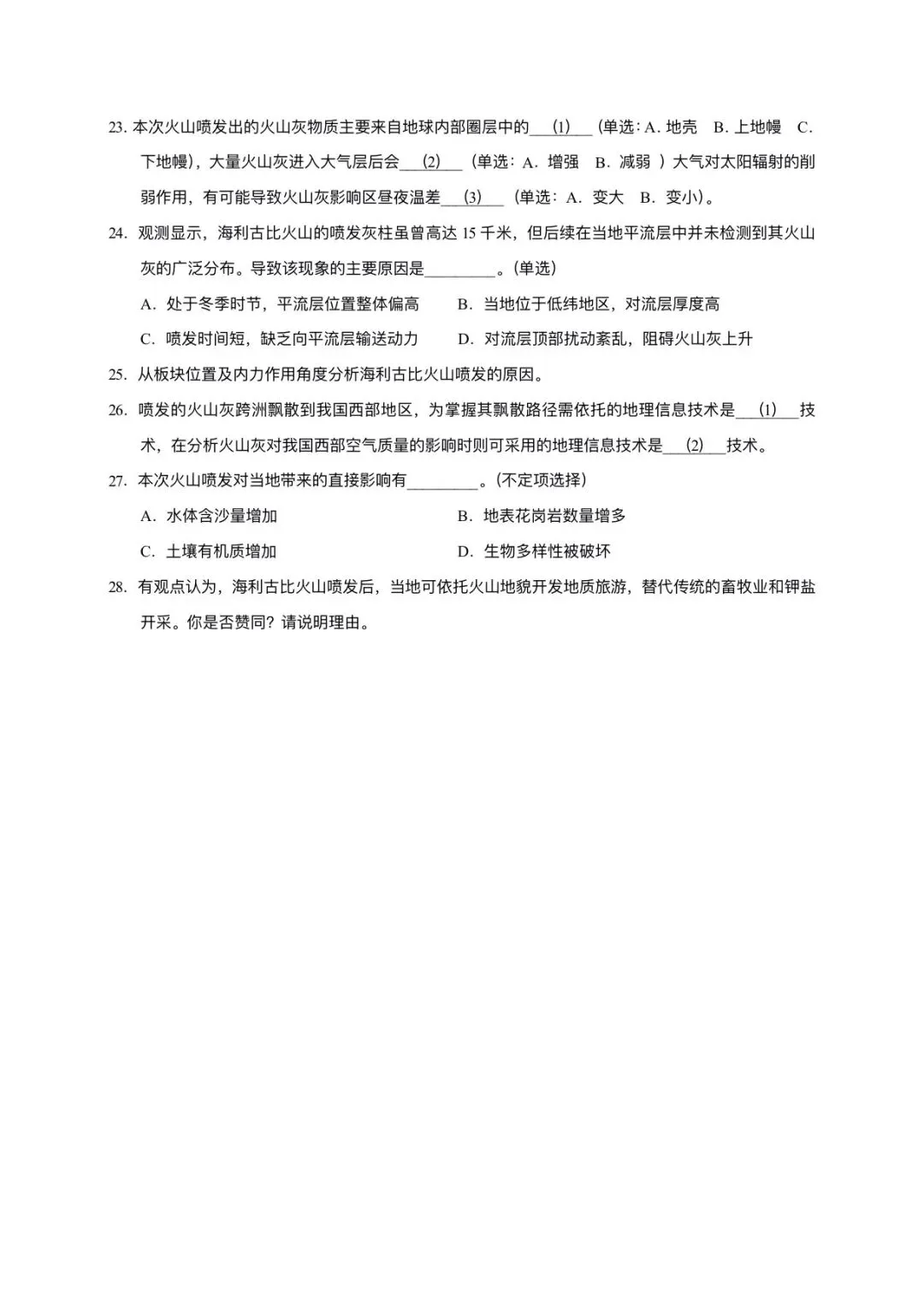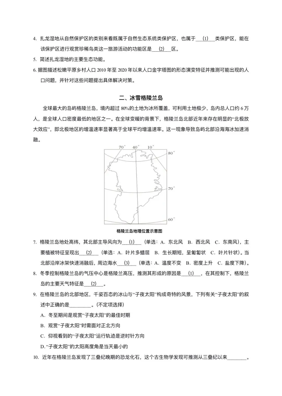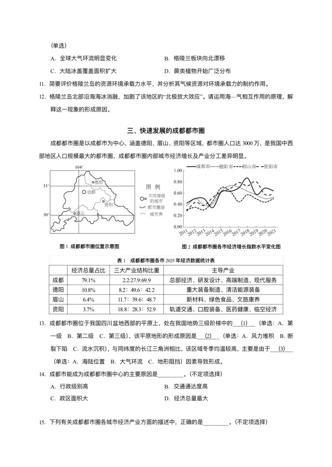 >上海市黄浦区2026届高三地理二模试卷及答案