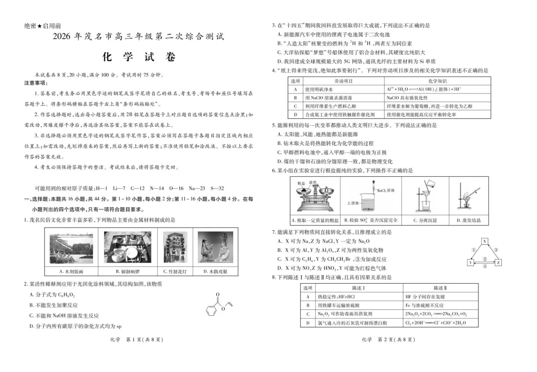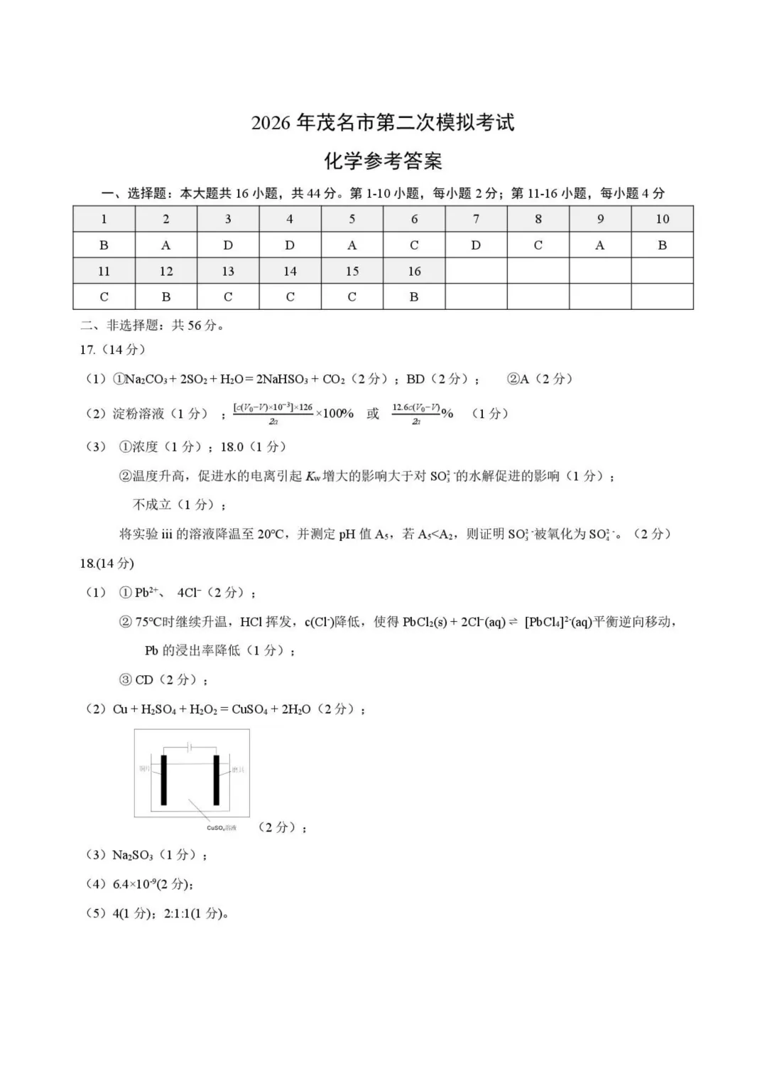 作者寄语:2026届茂名二模化学试卷+答案,7天有效领取,手慢无!!!