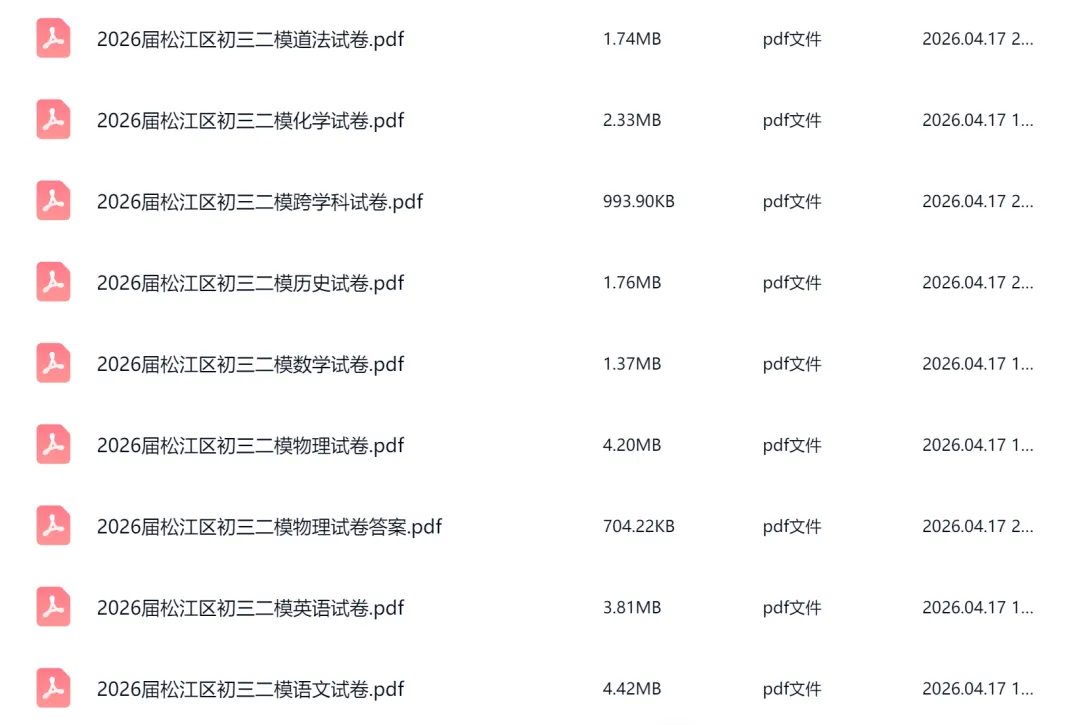>最新!2026届松江区初三二模各科试卷汇总!