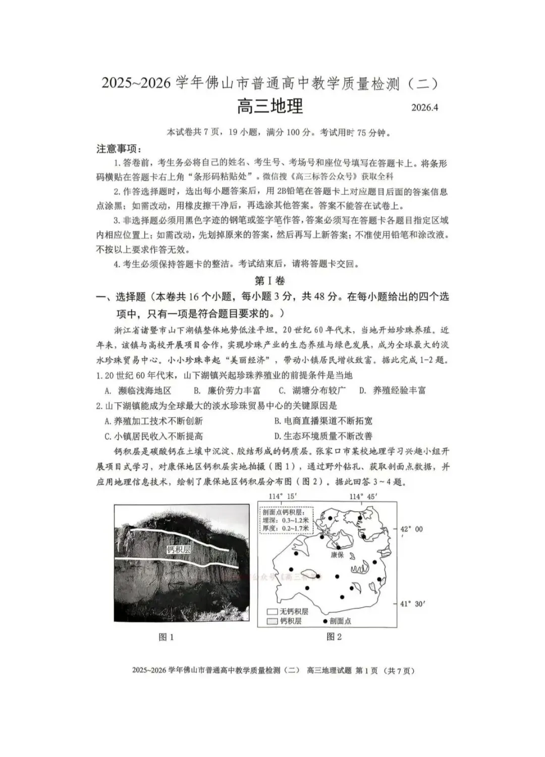 当前位置:首页>考研真题>2026年佛山市高三二模地理试卷和参考答案