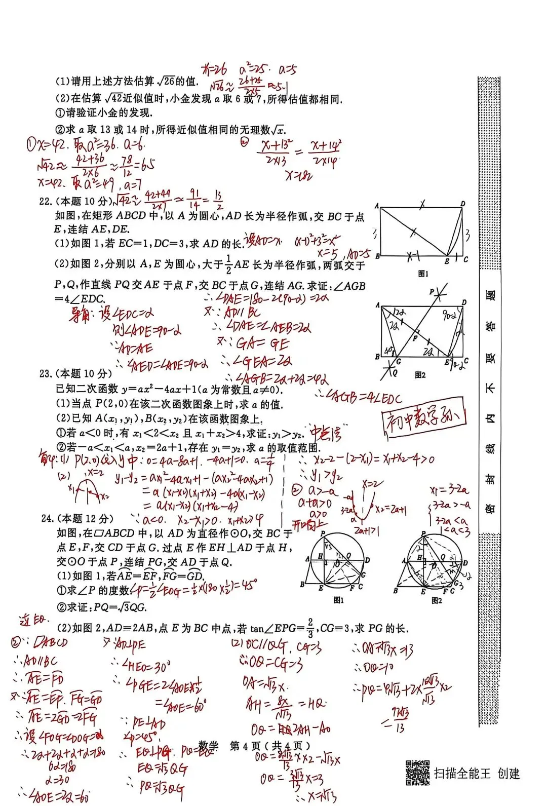 解答题压轴题T24 考查圆与四边形综合,考综合解题能力,题型老套。最后一问难度还是有的,综合性较强!