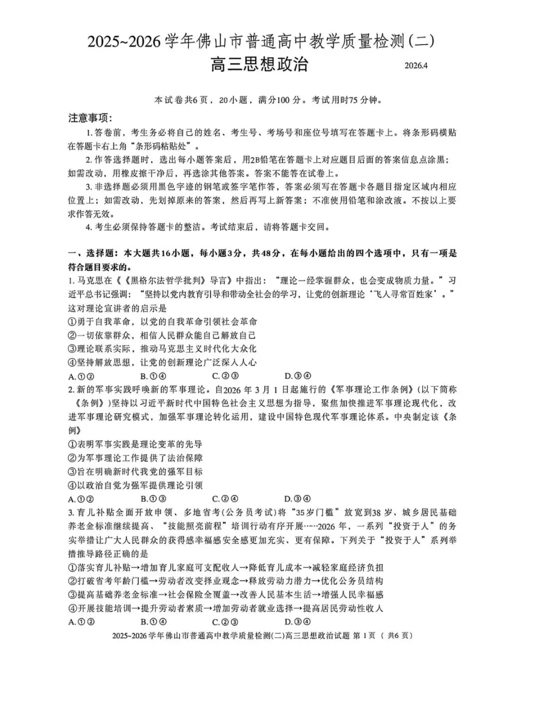 2026年高考考试内容: