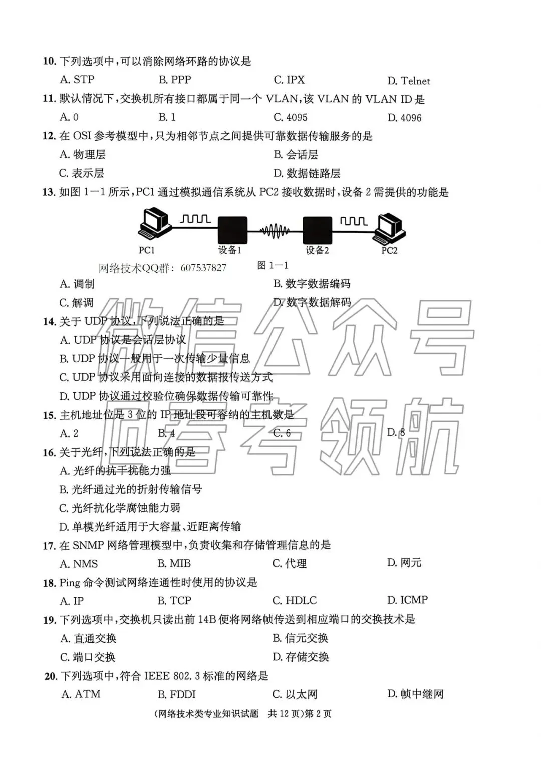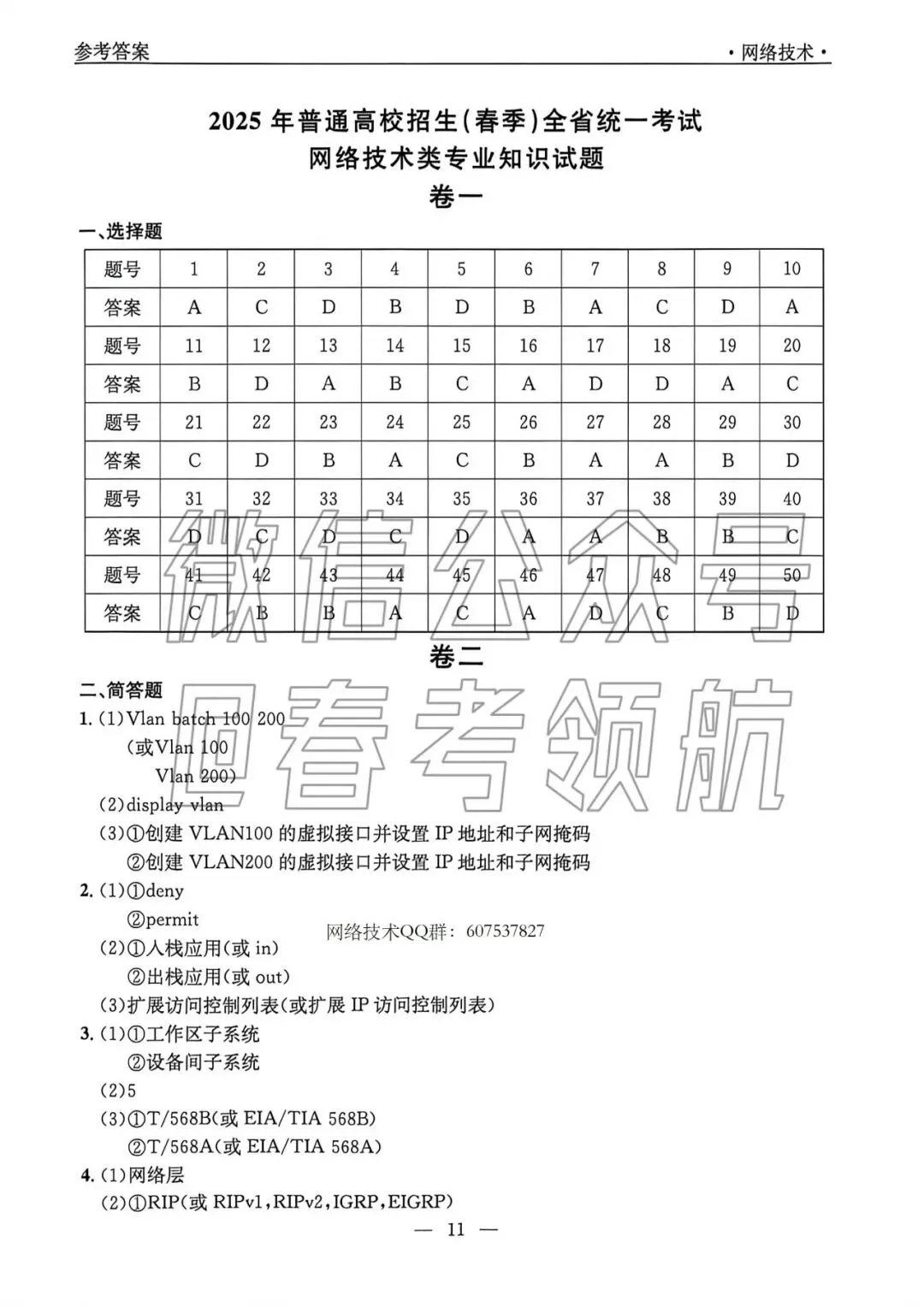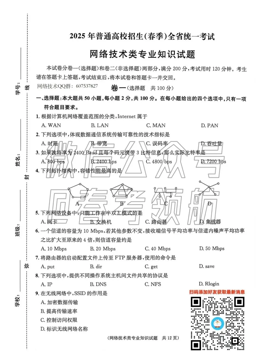 【最新】25年网络技术春考考试真题(含答案)