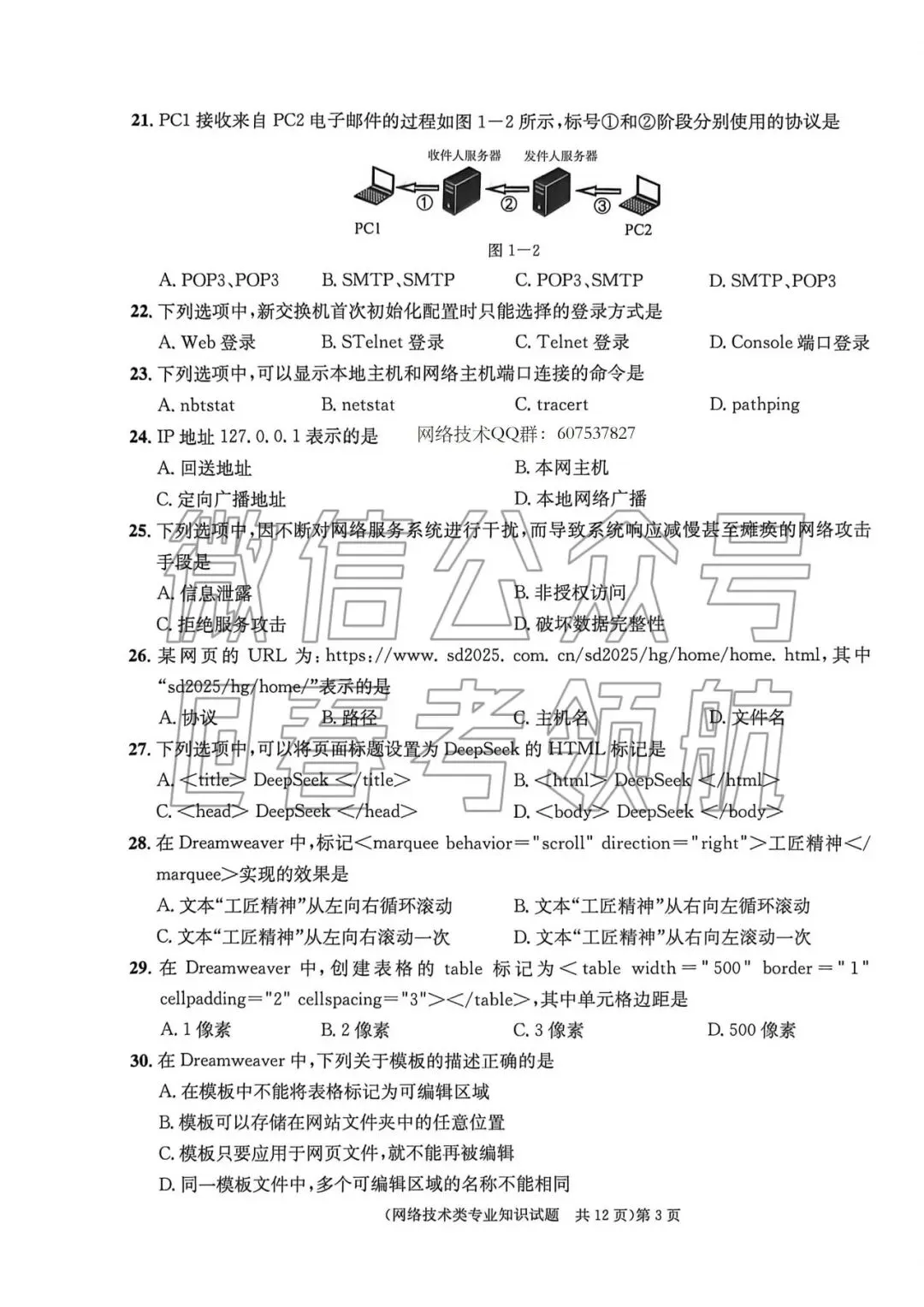 >【最新】25年网络技术春考考试真题(含答案)