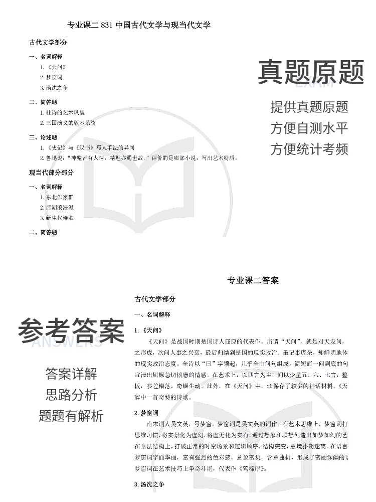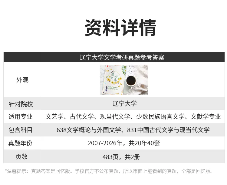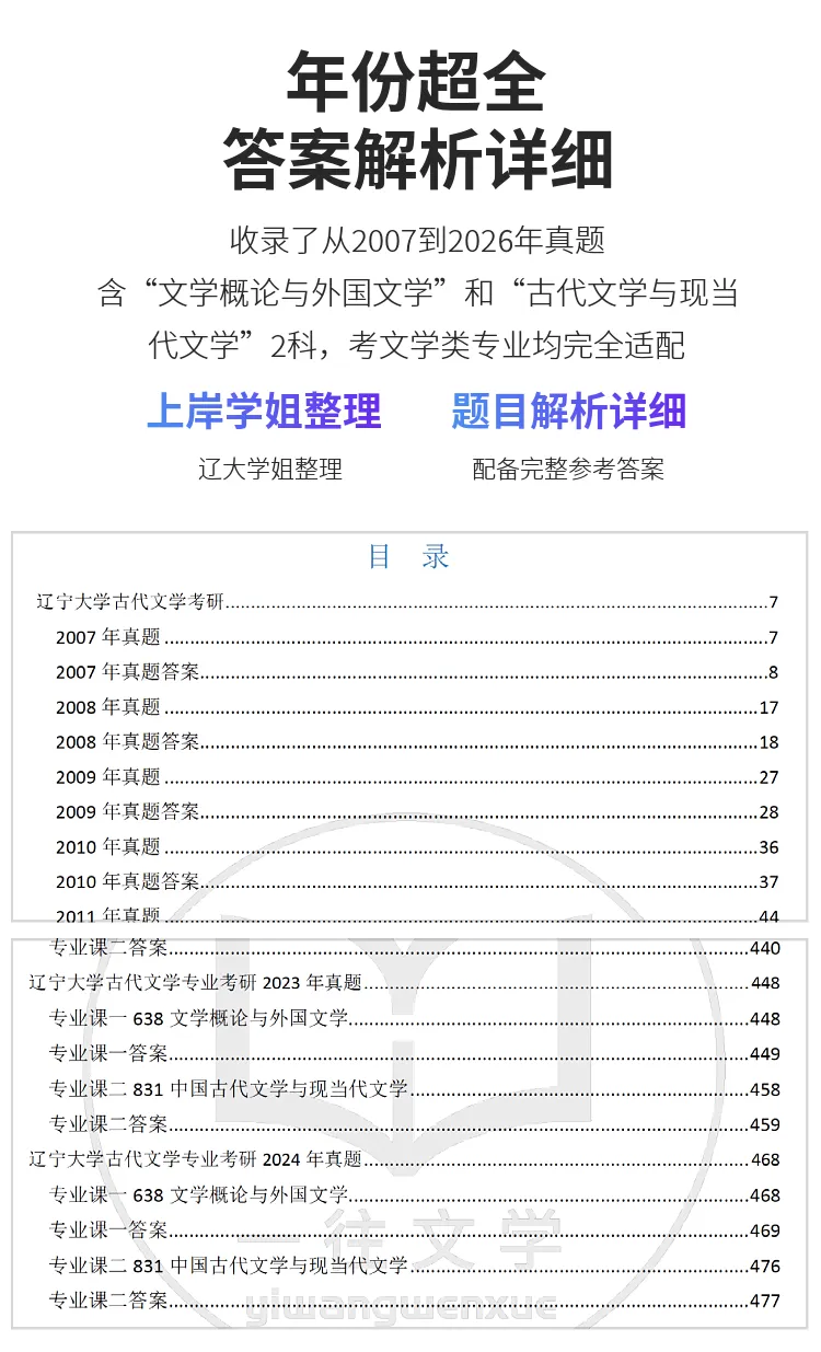 有同学说,不知道从哪里找院校的真题参考答案。今天推辽宁大学的。下单可以移步淘宝店铺“一往文学”,或者点击本文左下角“阅读原文”。