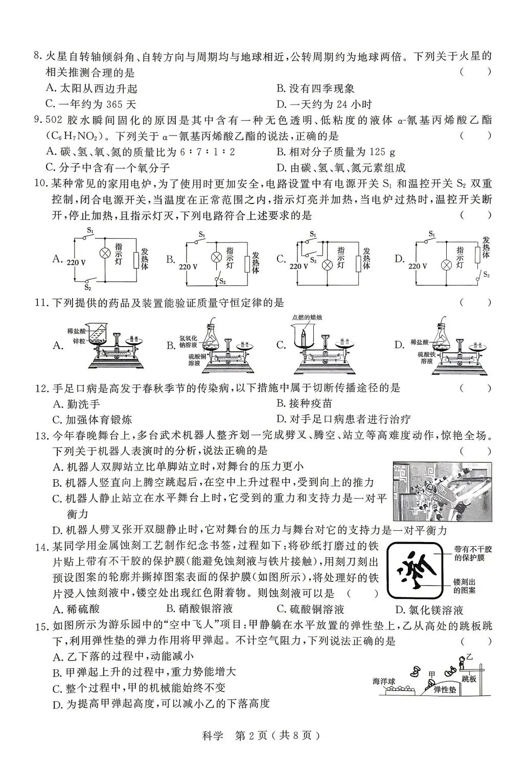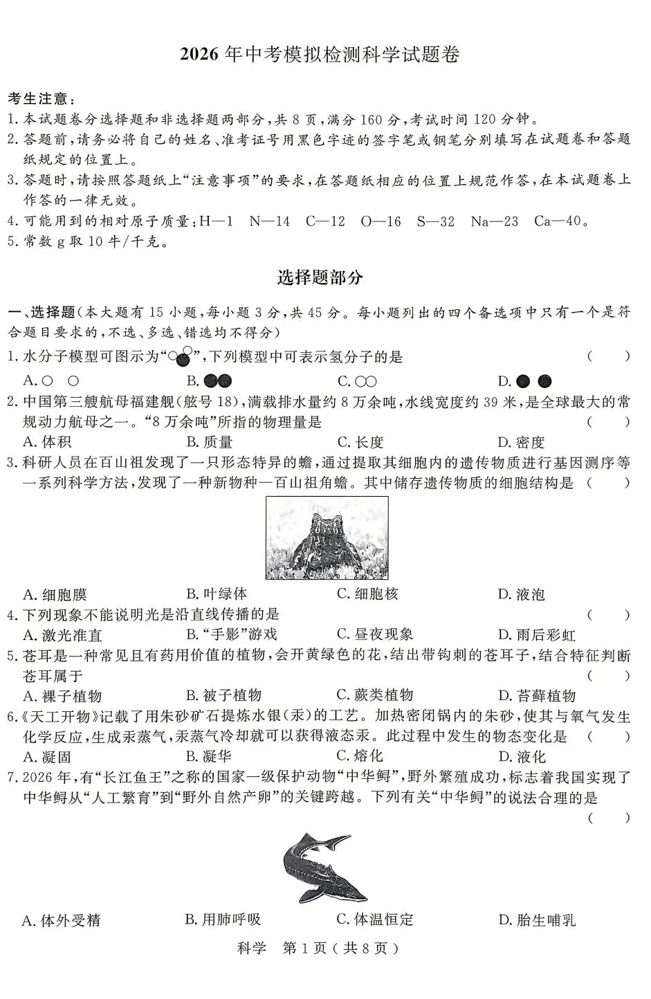 2026年杭州市临平区、余杭区一模科学试卷