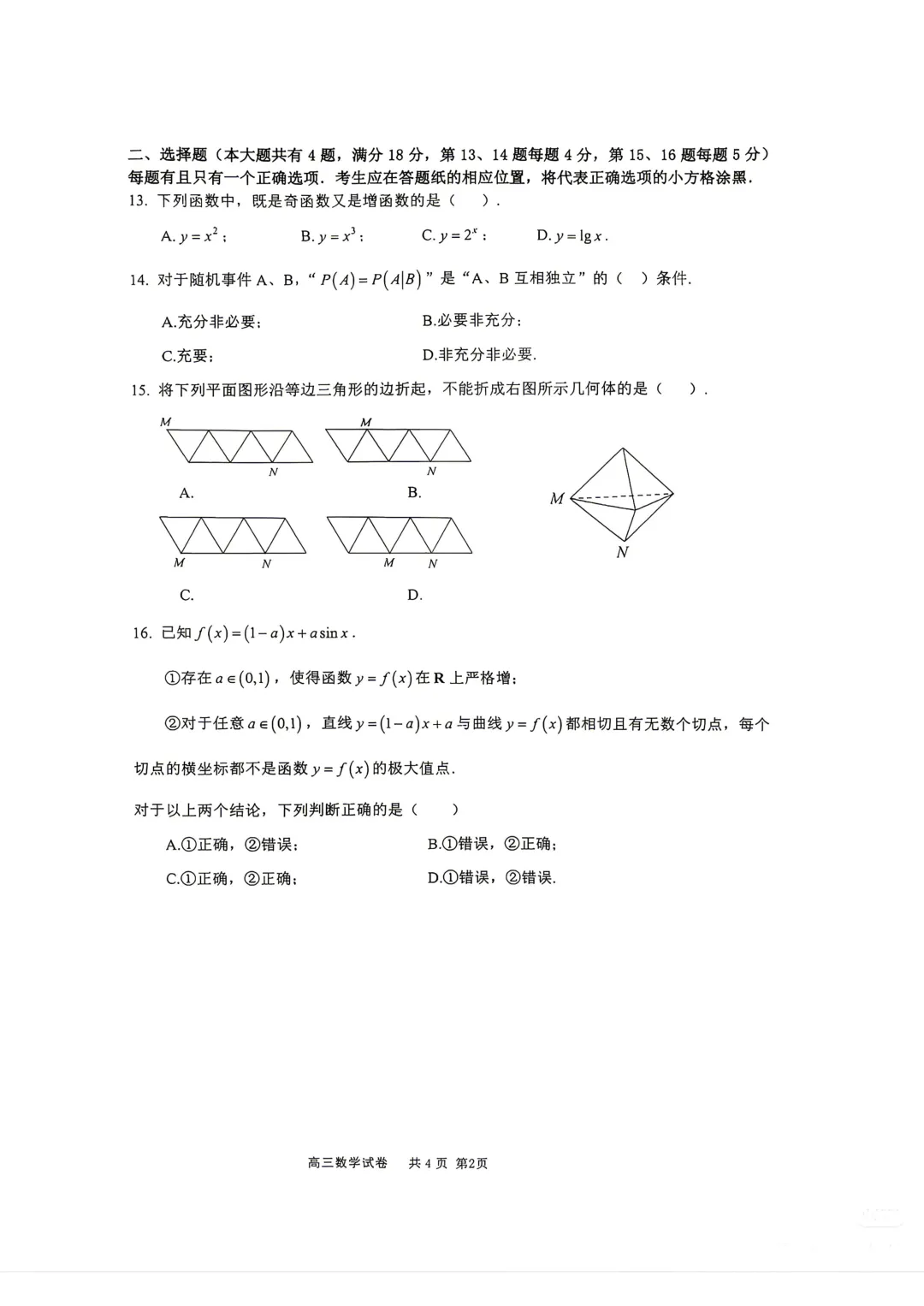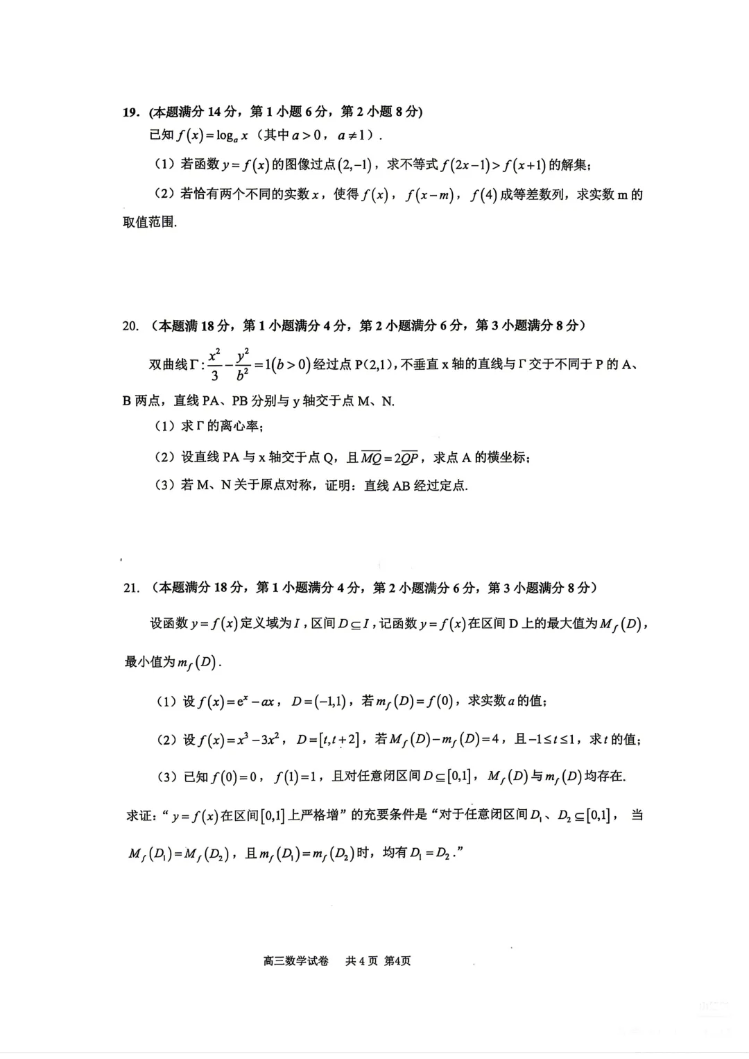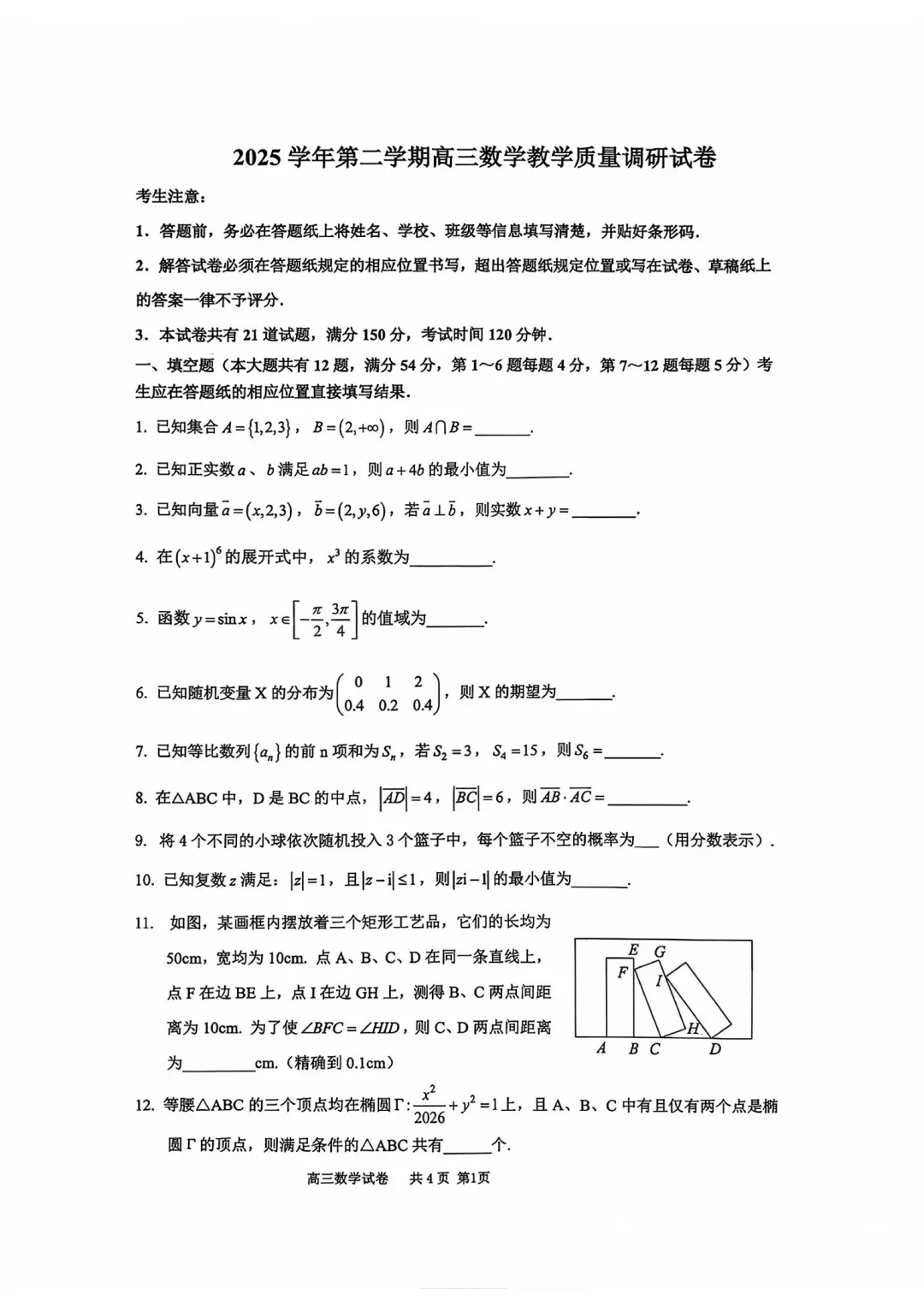 2026届上海市嘉定区高考数学二模试卷
