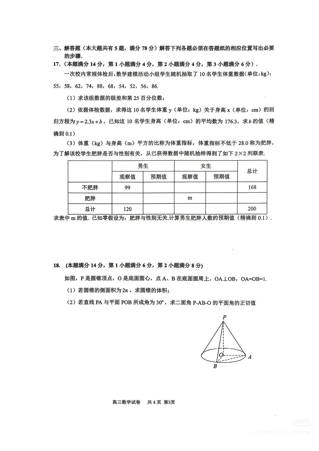 >上海市长宁区高三数学二模试卷(2026.4)