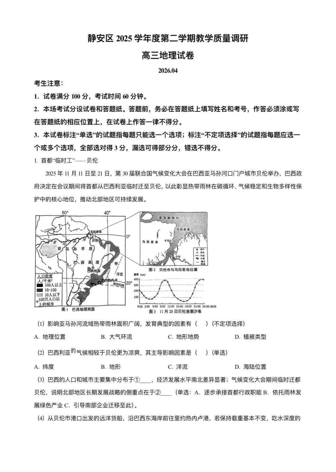 湖北黄冈市高三2026年4月月考数学试卷及答案