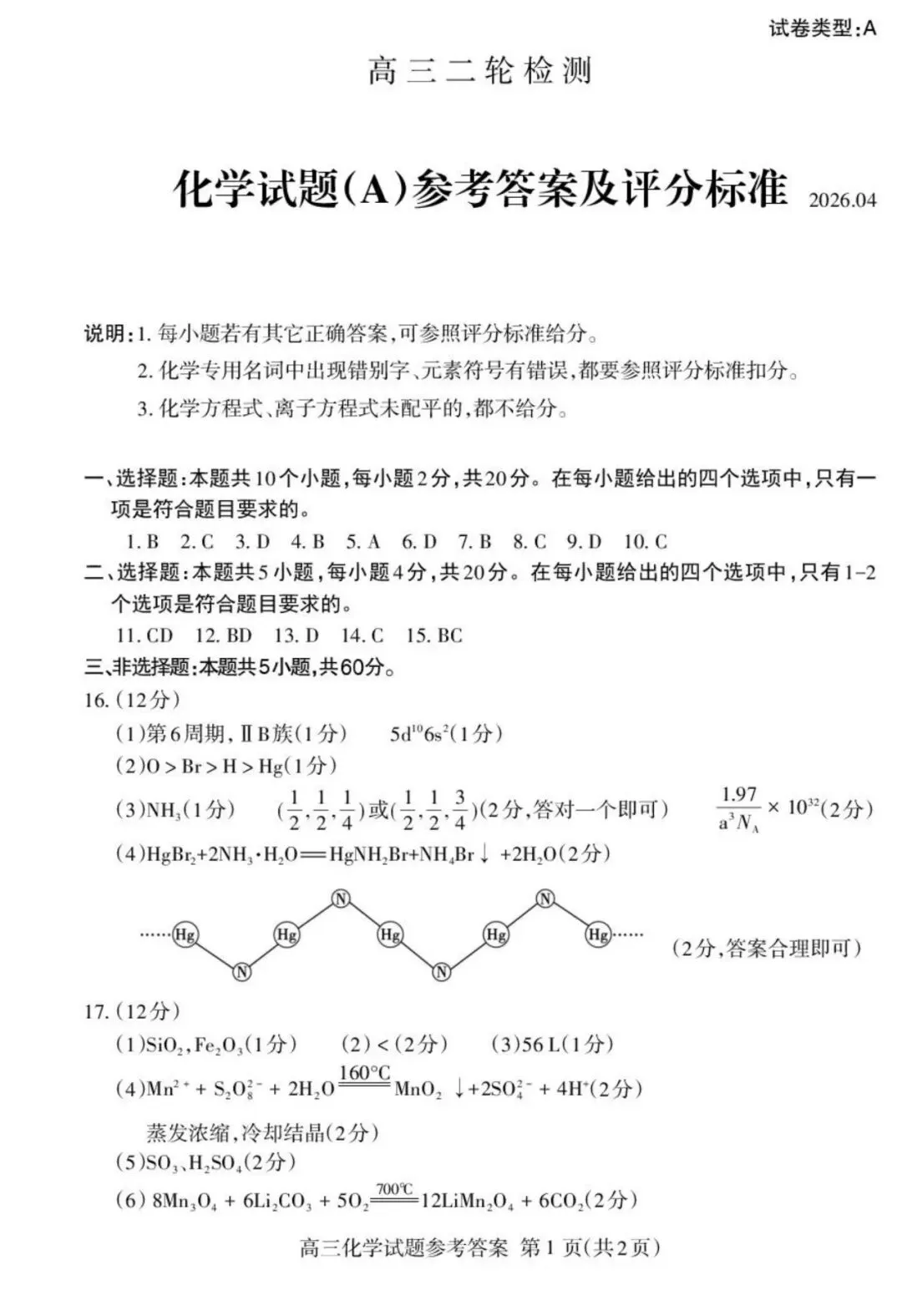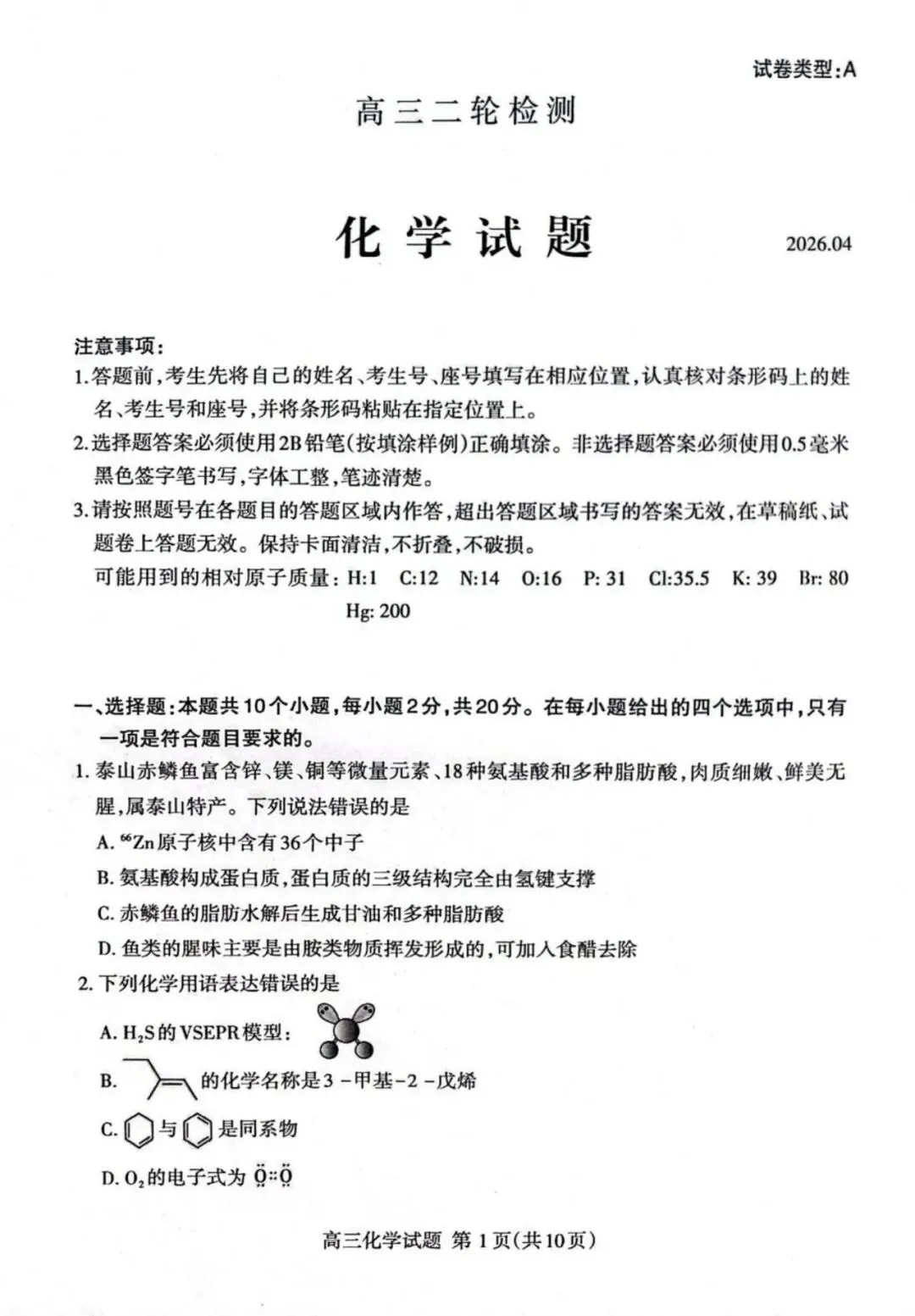 作者寄语:2026届山东泰安二模化学试卷+答案,7天有效领取,手慢无!!!