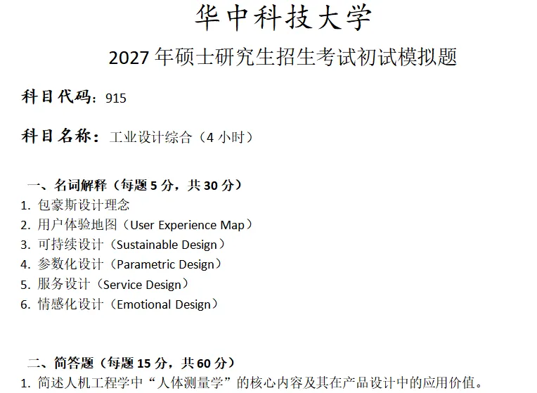 当前位置:首页>考研真题>华中科技大学915工业设计综合考研真题模拟
