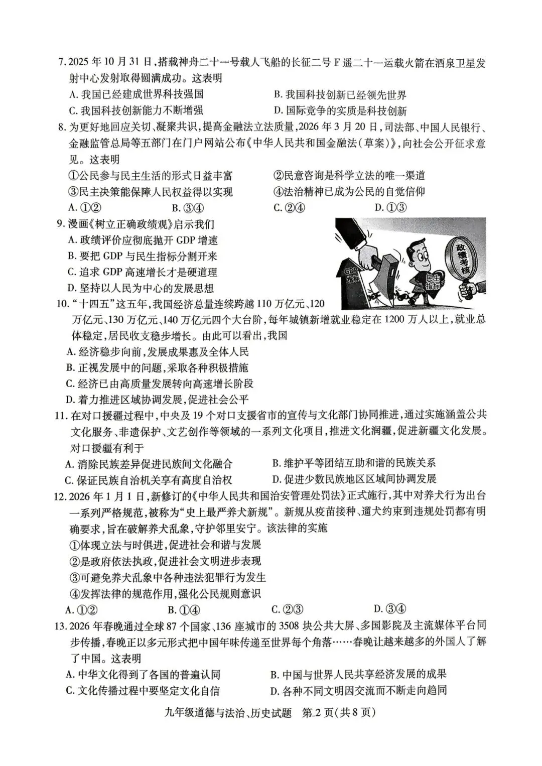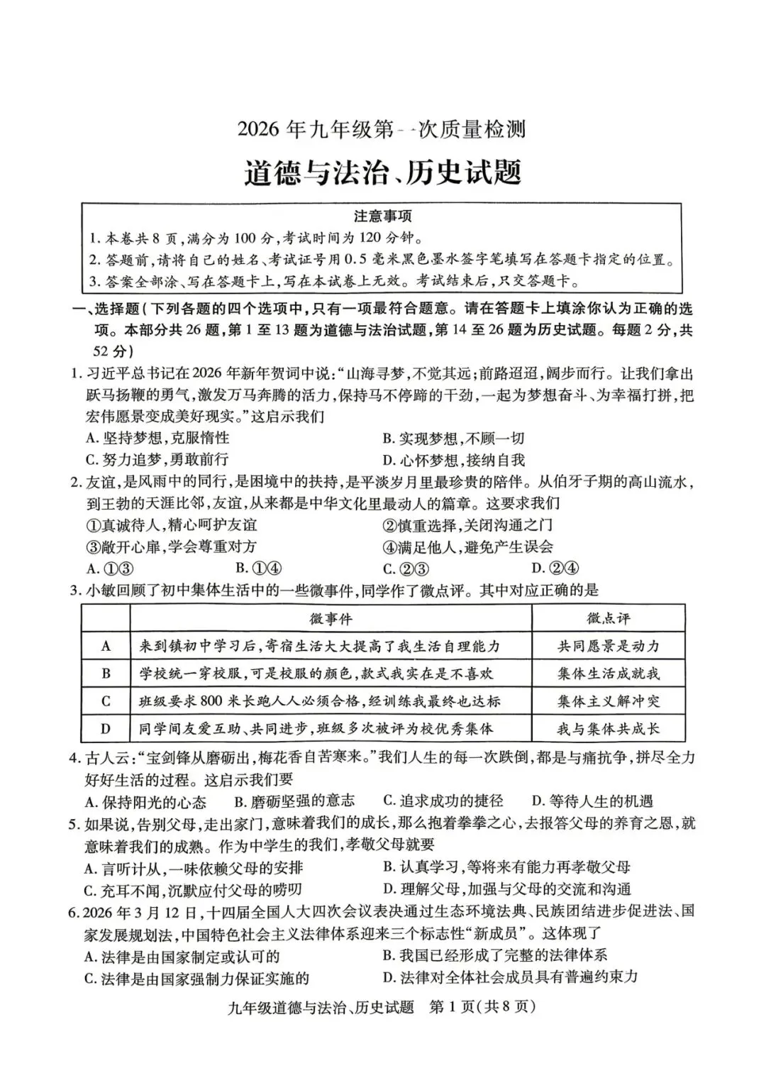 2026年中考一模试卷及答案(七科)