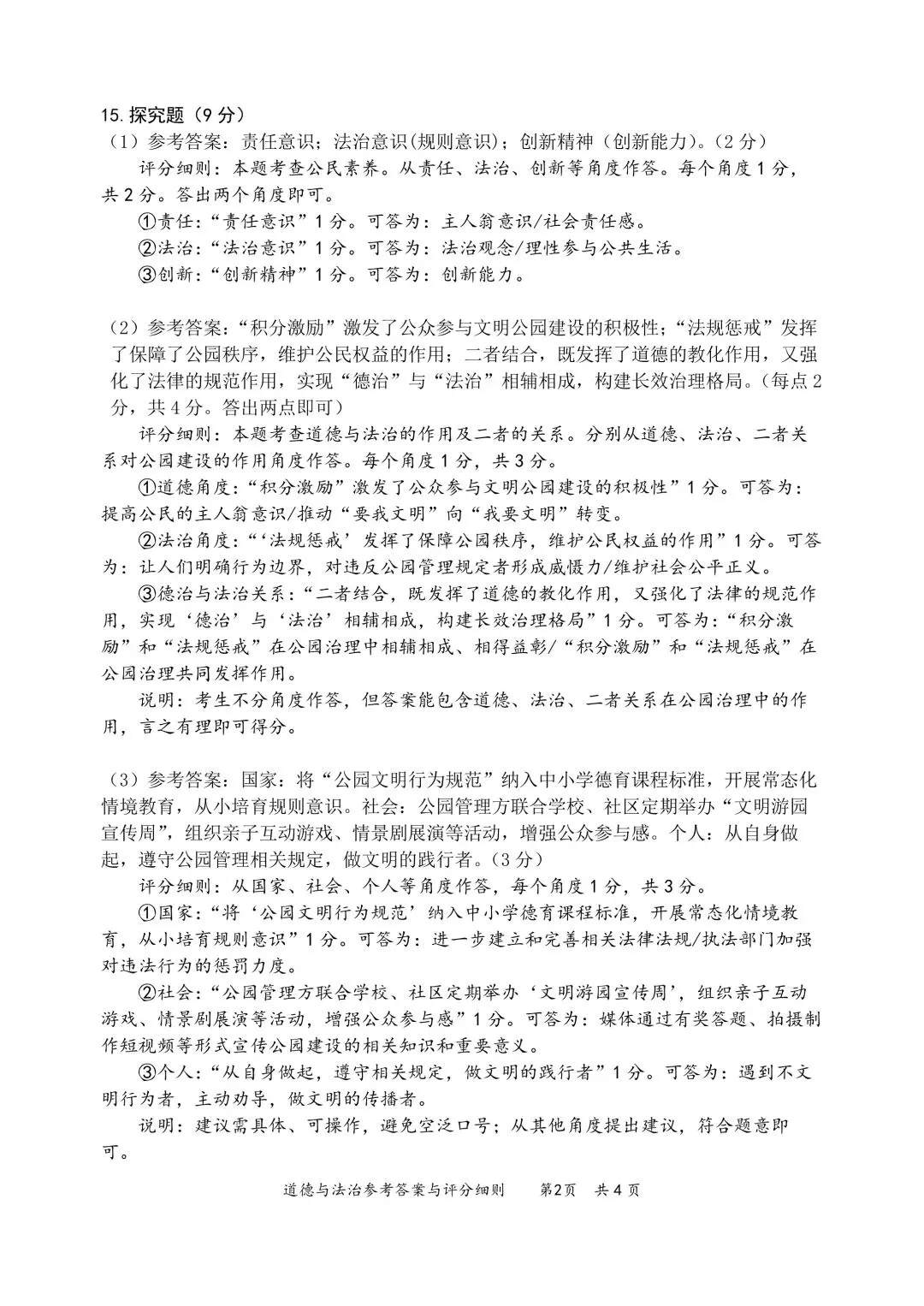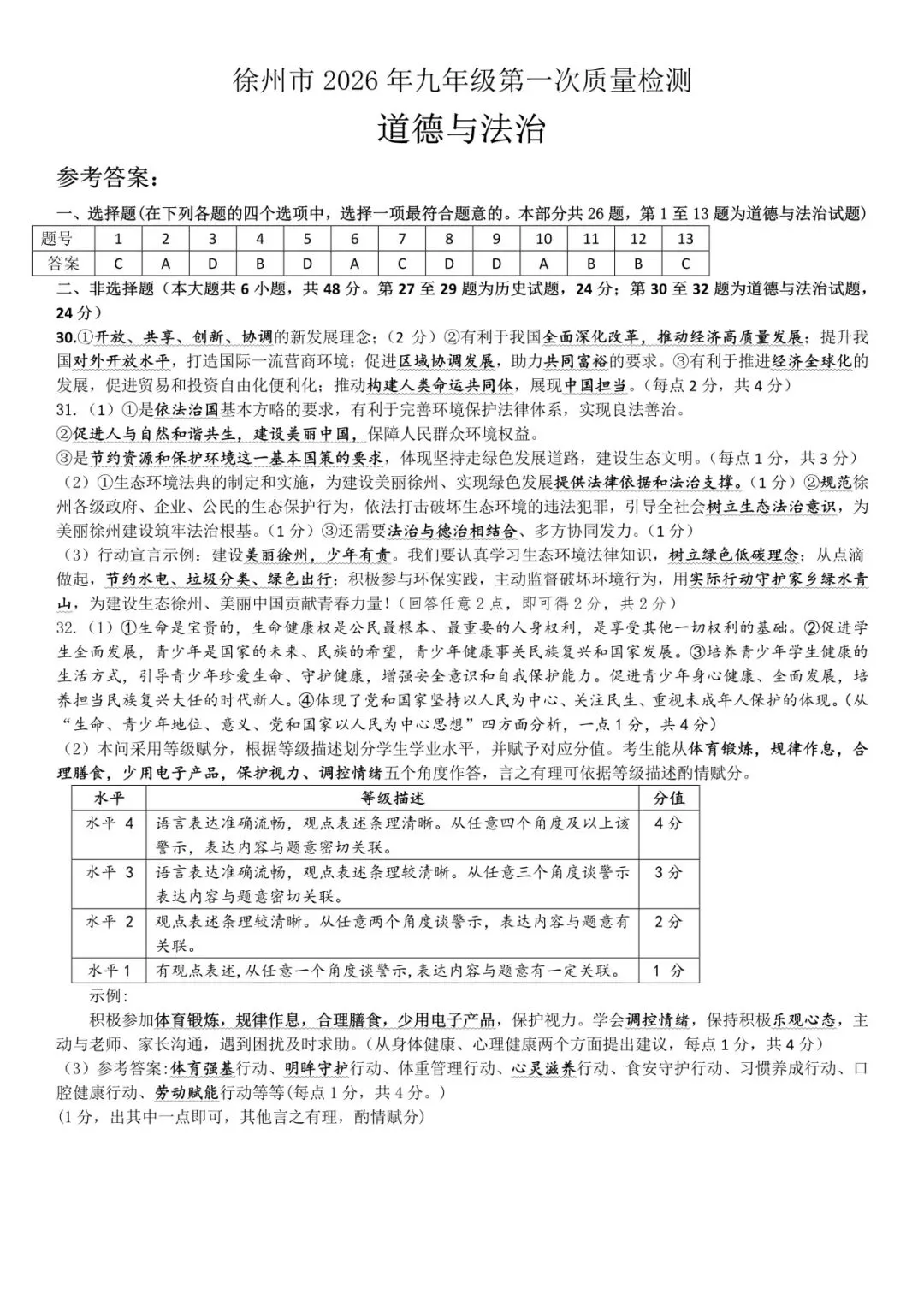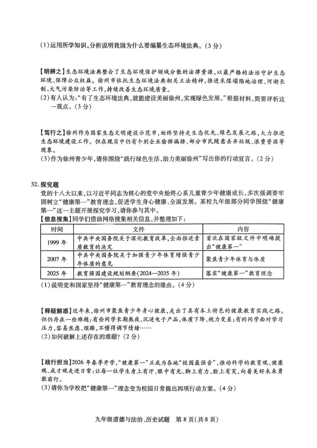 徐州一模试卷||新沂(铜山)+沛县九年级一模政治试卷(答案)