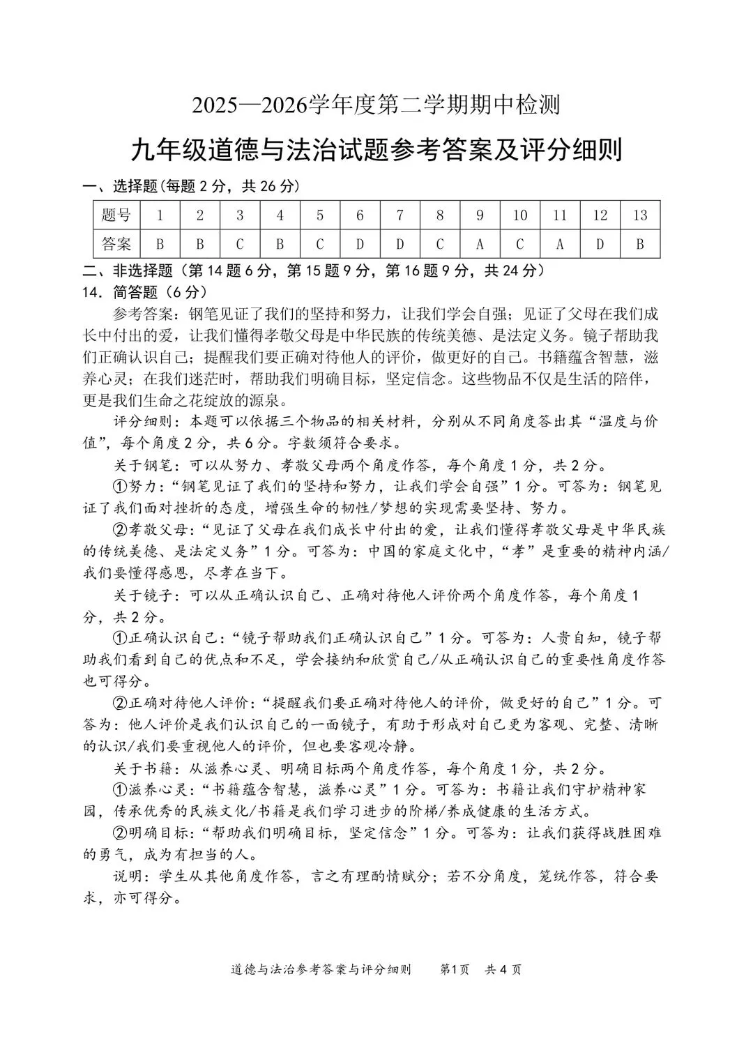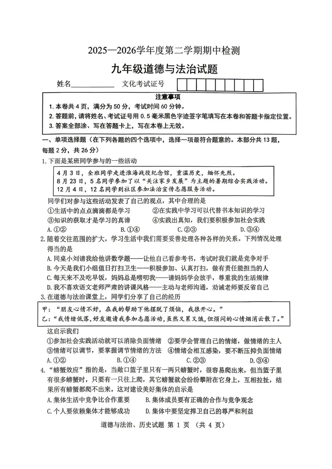 【期中试卷】123456年级下册道德与法治单元素养测评卷期中综合素养,pdf电子版可下载