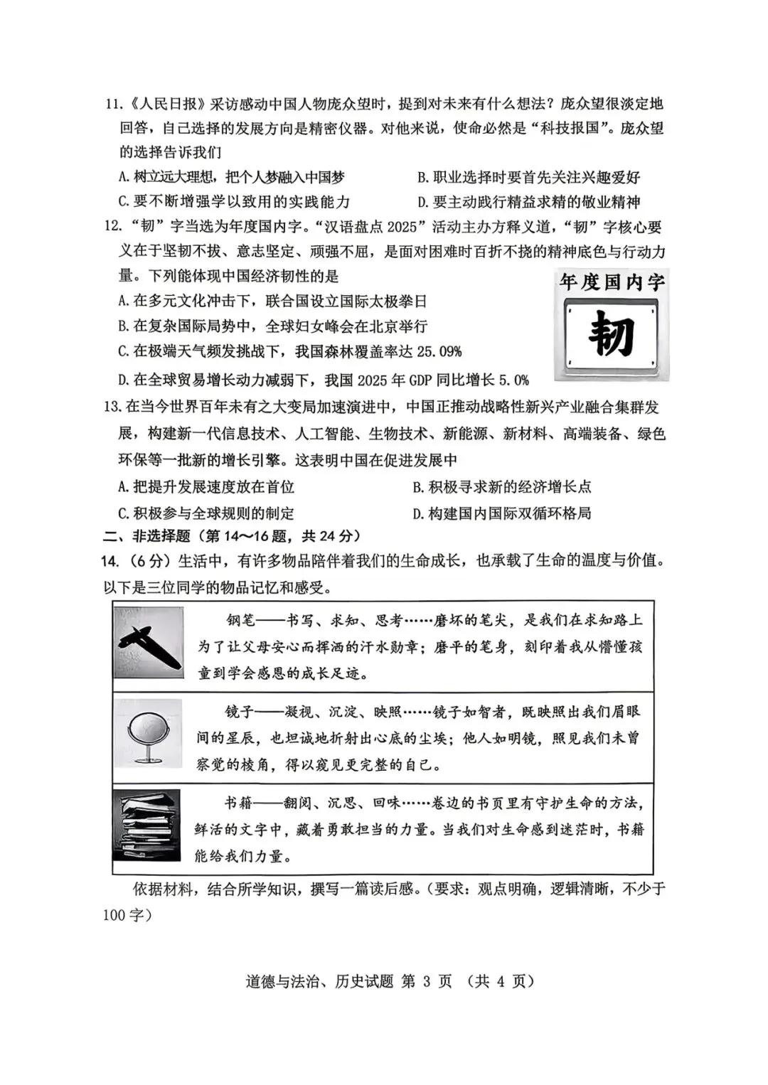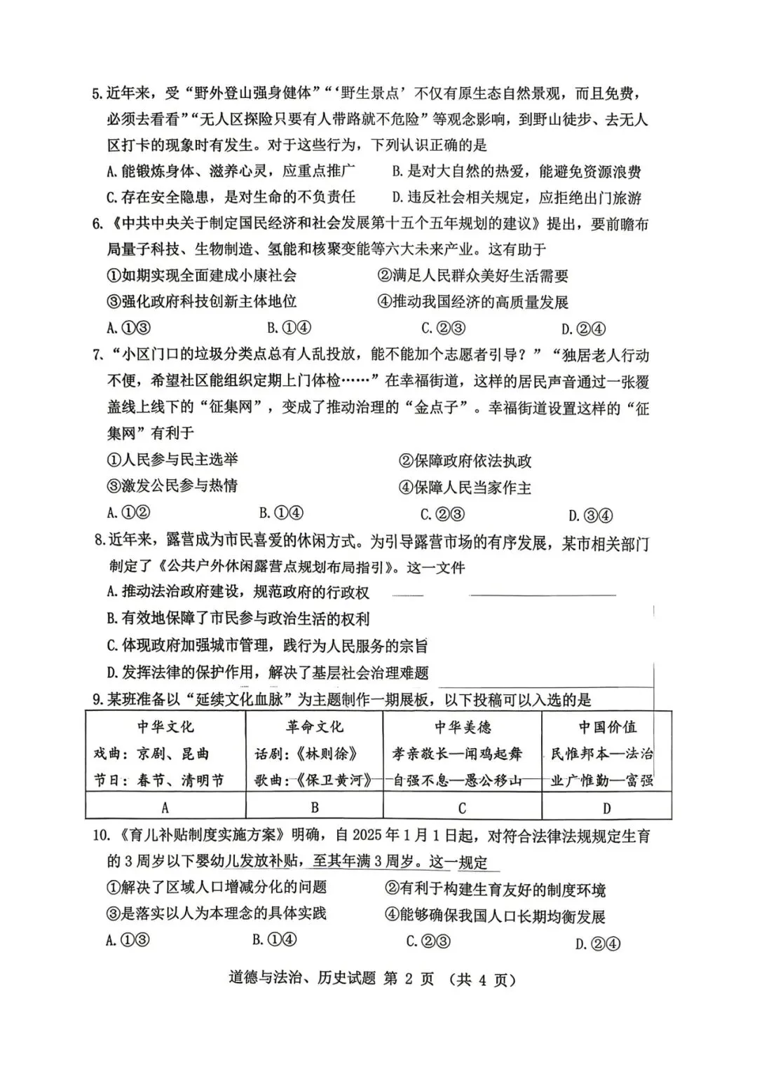 高考政治试卷:2019-2025广东高考政治试卷及答案(广东卷)