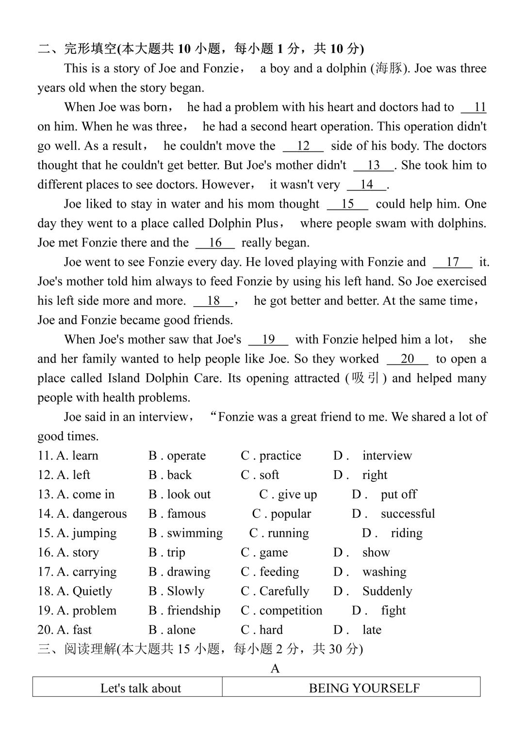 >2026年人教版中考英语第二次模拟试卷(含答案),难度适中,可打印!