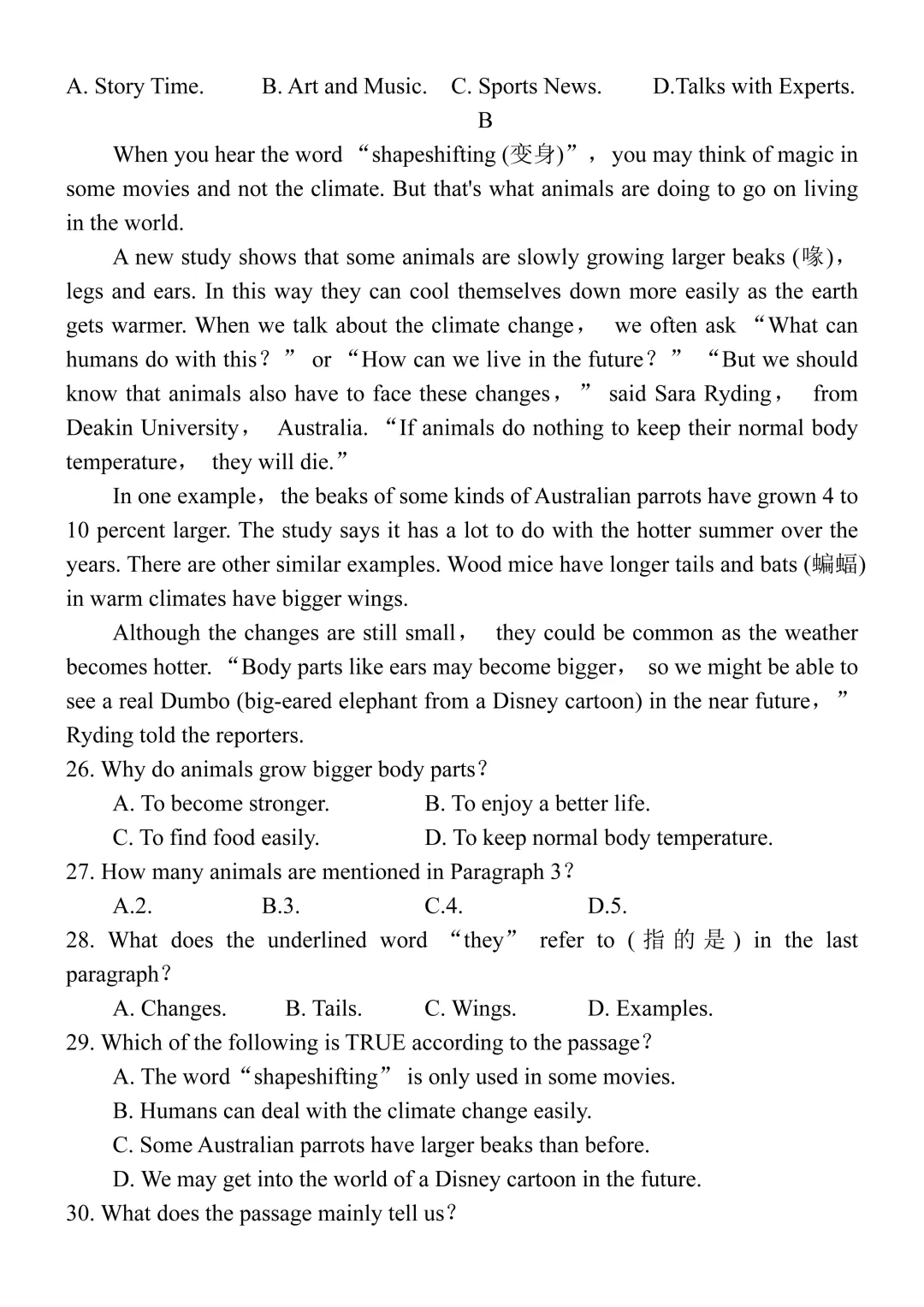 最新!2026松江二模英语试卷&解析!
