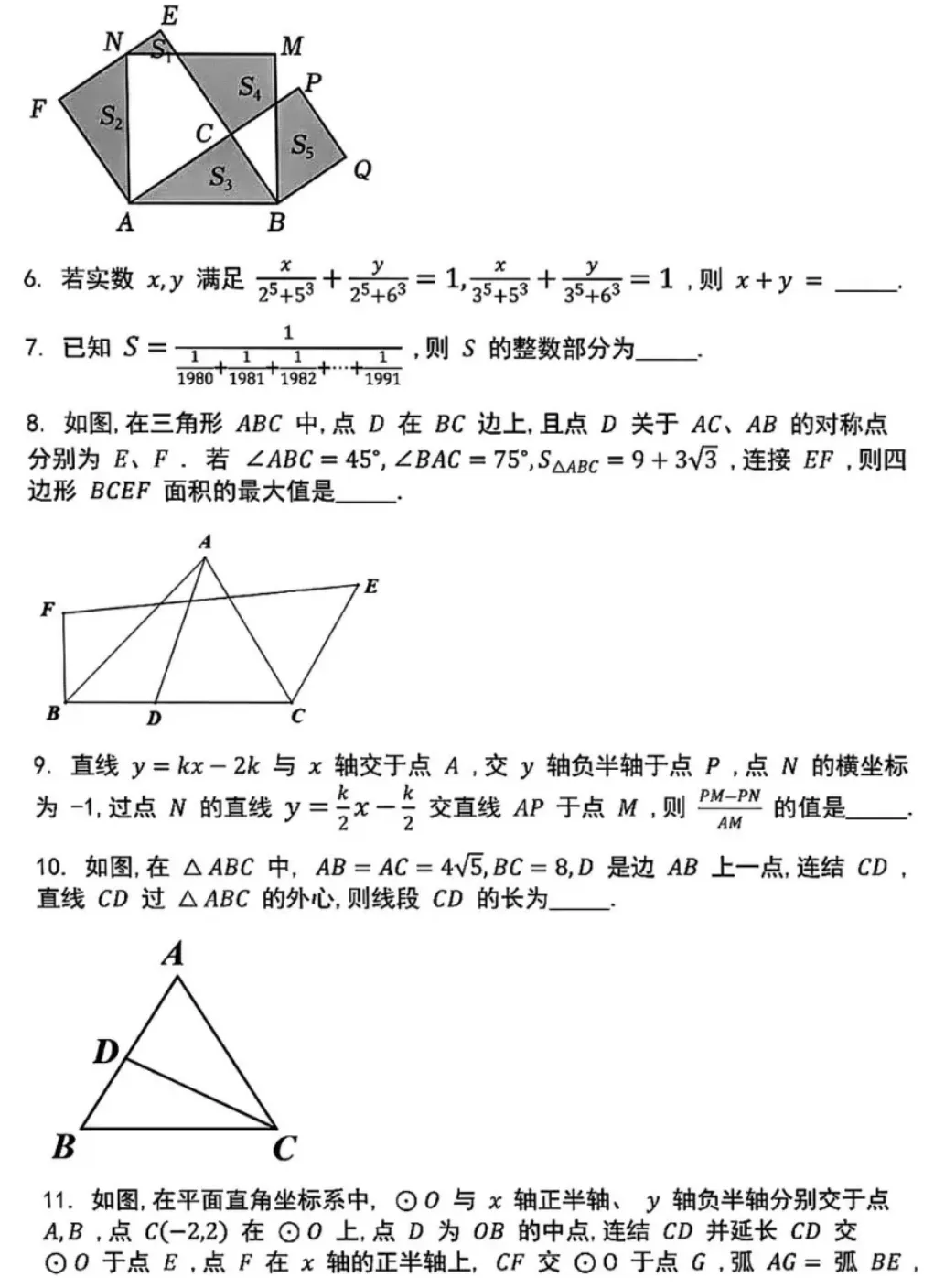 宁波及浙江各地区七、八、九年级数学大讲堂、强基培优选拔考试卷