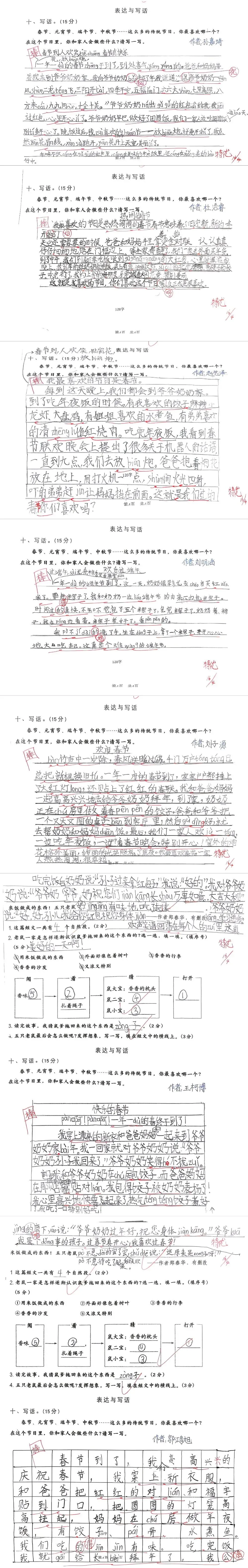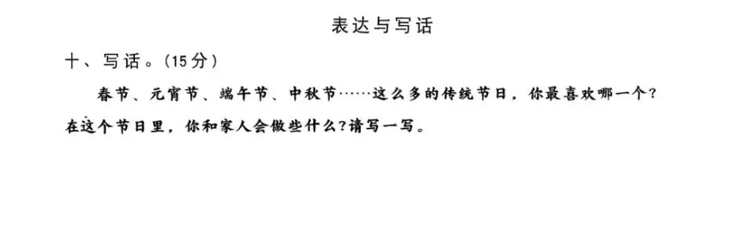 【试卷写话】情景写话:最喜欢的传统节日(二年级下册第三单元)