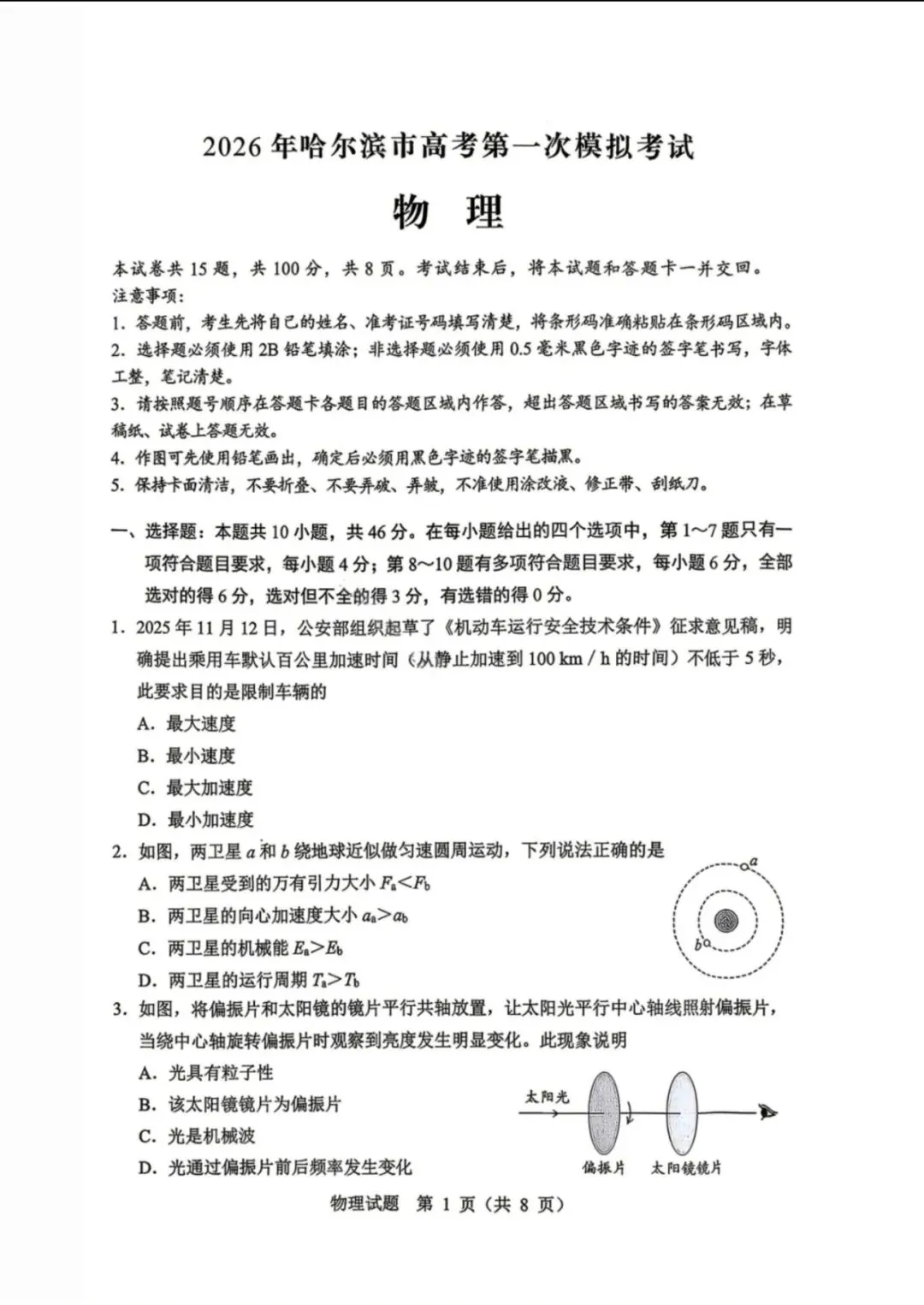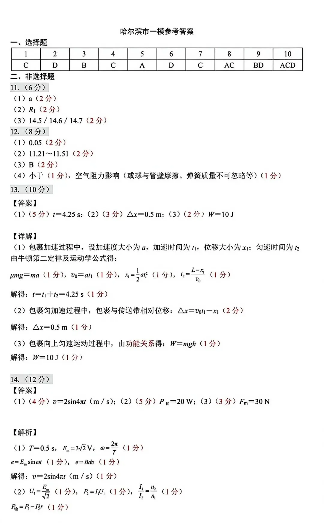 2026哈尔滨高三物理一模试卷专业老师深度解析和备考建议.