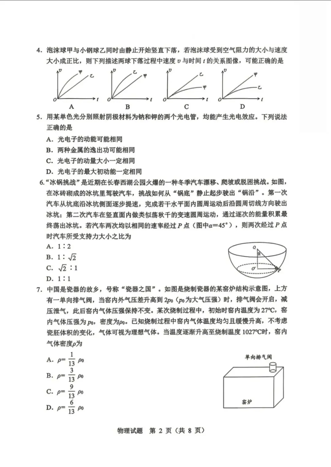 ◦ 动能定理与机械能守恒(特别是包含圆周运动的竖直面问题,如本卷第 6 题)。