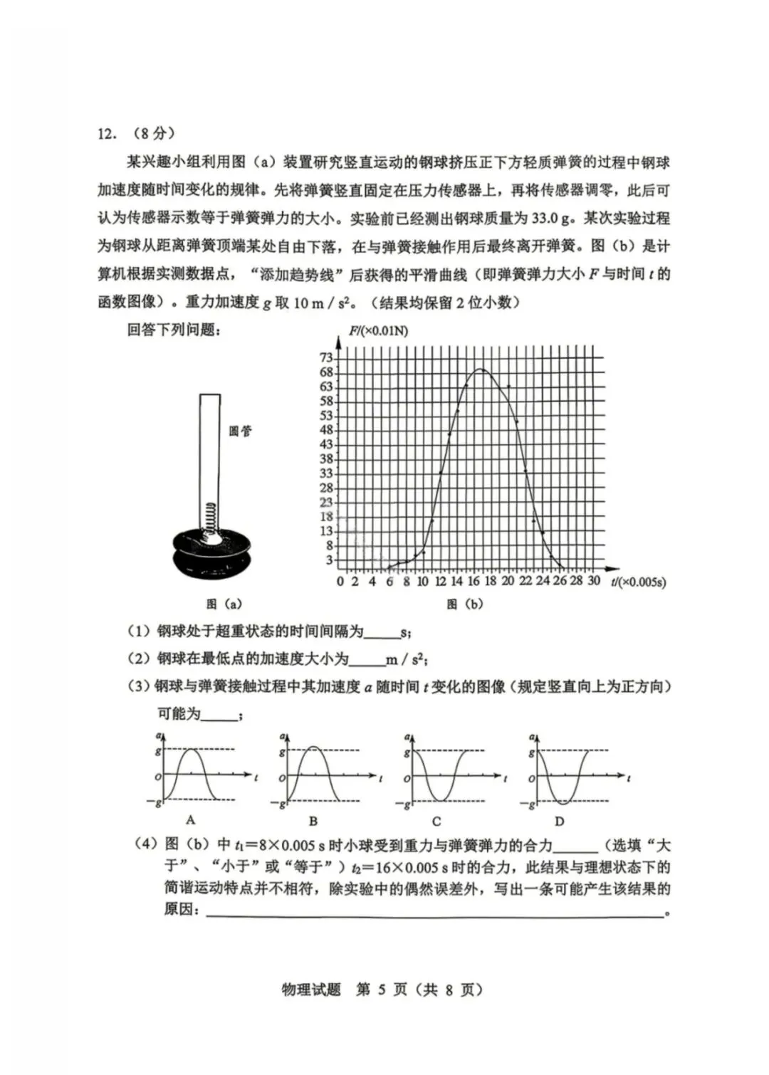 • 核心知识:弹簧振子模型,超重与失重,F-t 图像。