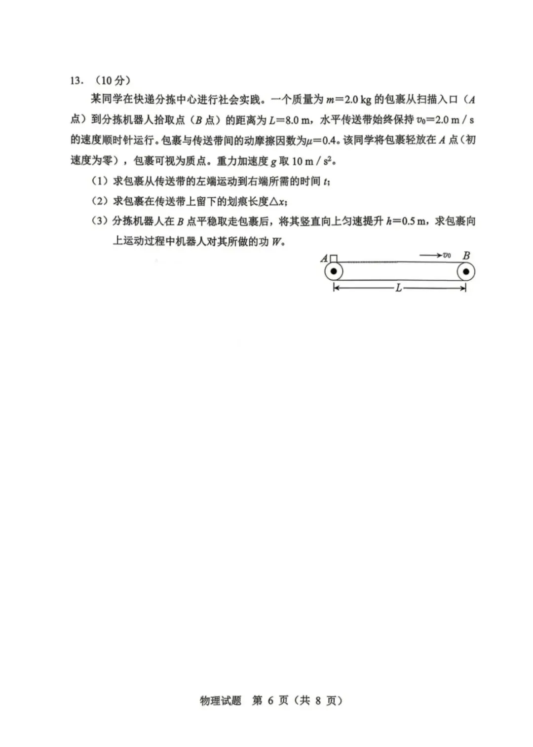• 核心知识:牛顿运动定律,运动学,传送带模型,功和能。