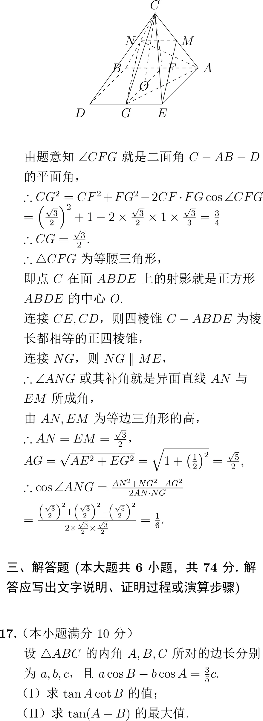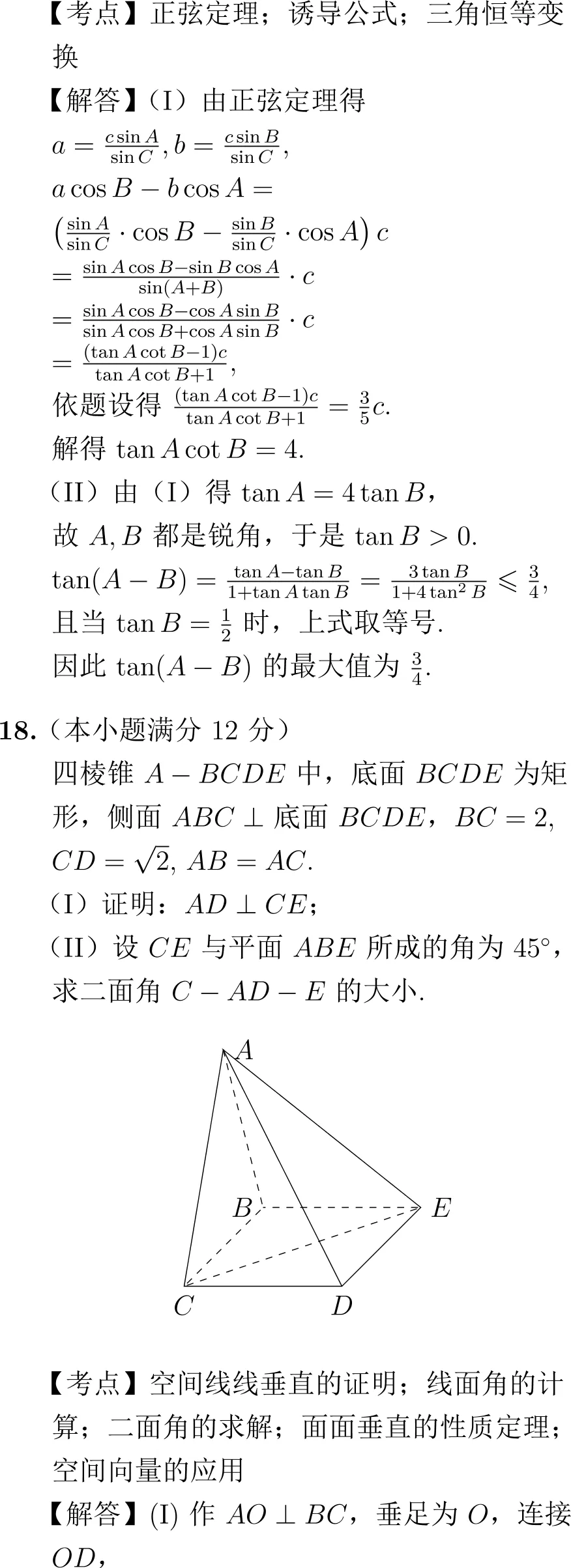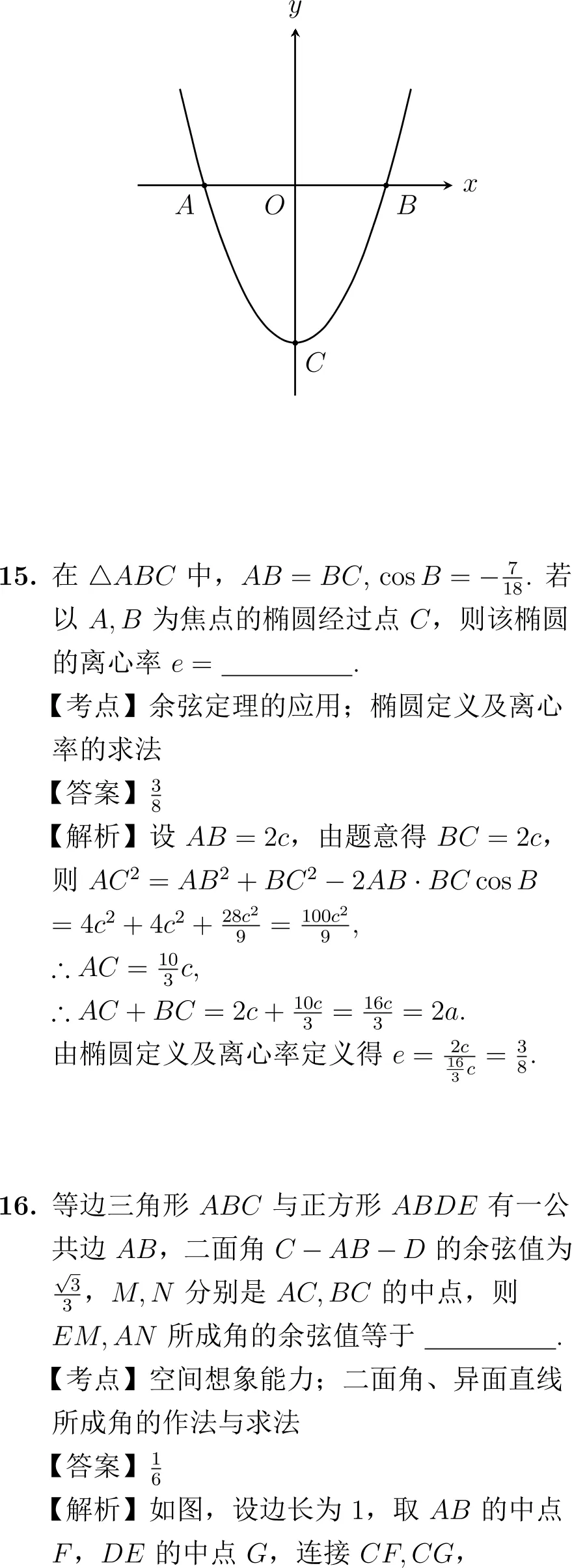 各模块考查各有侧重,体现综合性与实用性。函数与导数模块涵盖定义域、反函数、单调性、导数几何意义及不等式证明,其中第19题含参二次函数分类讨论、第22题数列与导数结合的不等式放缩,难度较高,考查逻辑推理与运算能力;三角函数模块聚焦诱导公式、图像变换、正弦余弦定理及三角恒等变换,第17题结合三角变换求最值,侧重知识综合应用;立体几何模块以线面垂直、空间角求解为核心,可通过几何法或向量法解题,考查空间想象能力;解析几何模块涉及直线与圆、抛物线、椭圆、双曲线,第21题双曲线与等差数列结合,计算量大、综合性强,是难点之一;概率统计模块以古典概型、随机变量分布列与期望为重点,第20题结合实际化验情境,体现数学应用价值;数列模块兼顾基础与难点,基础题考查通项与前n项和,压轴题结合递推关系与不等式放缩,难度突出。