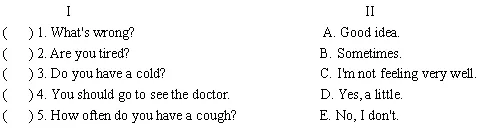 (二) 交际用语(Daily English)I. 从II 栏中找出与I栏相对应的答语。(5分)