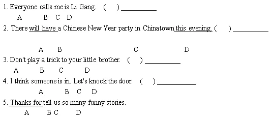 II. 回答问题: (5分)1.-How are you, today?_______2. ____________.I have chicken and vegetables for lunch.3. -_____________________________?I have three.4. ____________________________? Iced tea, please.5. _________________?They’re running.(三) 语法练习 (Grammar)I. 单项选择---从下列各题后所给的四个选项中选出最佳选项。(10分)( ) 1. Do you need ________ energy to dance?A. lot of B. lots of C. many D. a lot( ) 2. -________ do you listen to news?-Twice a day.A. How many days B. How many times C. How often D. How much( ) 3. My sister Janet hates carrots, so she ________ eat them.A. usually B. alwaysC. every day D. seldom( ) 4. -I want to buy ________.-Here you are.A. half kilos of beef B. a kilo of meats C. two kilos of chickens D. two kilos of rice( ) 5. -Are you feeling ________ today?-Yes, thank you.A. good B. health C. better D. bad( ) 6. Would you like ________ to eat?A. anything nice B. something nice C. nice anything D. nice something( ) 7. His bag is ________ of all.A. heavy B. heaviest C. the heaviest D. heavier( ) 8. -Is that your bag?-Yes. ________.A. It’s mine B. It’s me C. It’s my D. It’s you( ) 9. My grandfather enjoys ________ newspapers ________ breakfast.A. watching; on B. seeing; in C. reading; at D. to read; at( ) 10. Thank you for ________ my bike.A. to mend B. mending C. mends D. will mendII. 改错(下列各句中A、B、C、D四处均有一处错误,请找出)。(5分)