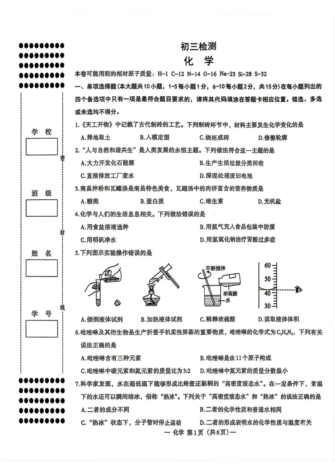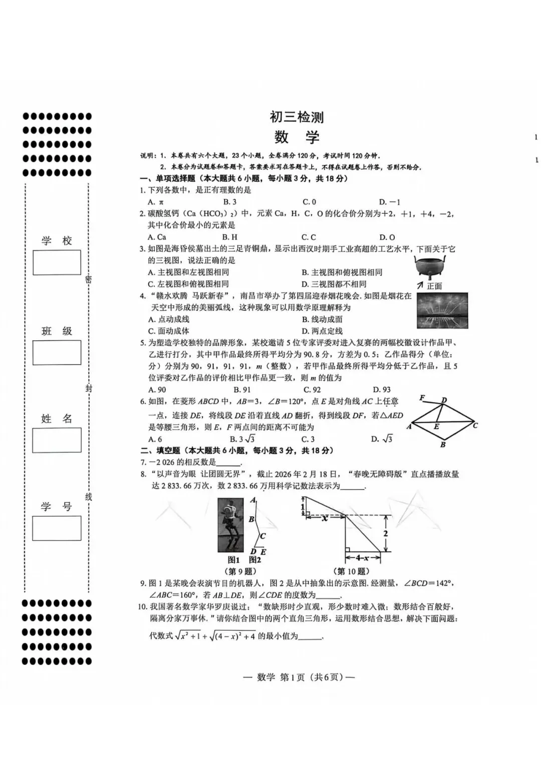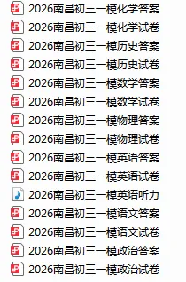 >【免费分享】2026年南昌初三一模全科试卷及答案