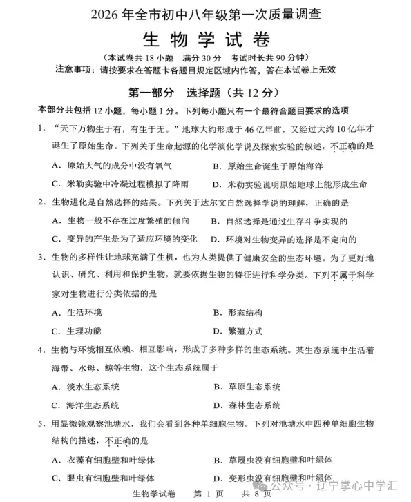 【免费分享】2026年南昌初三一模全科试卷及答案