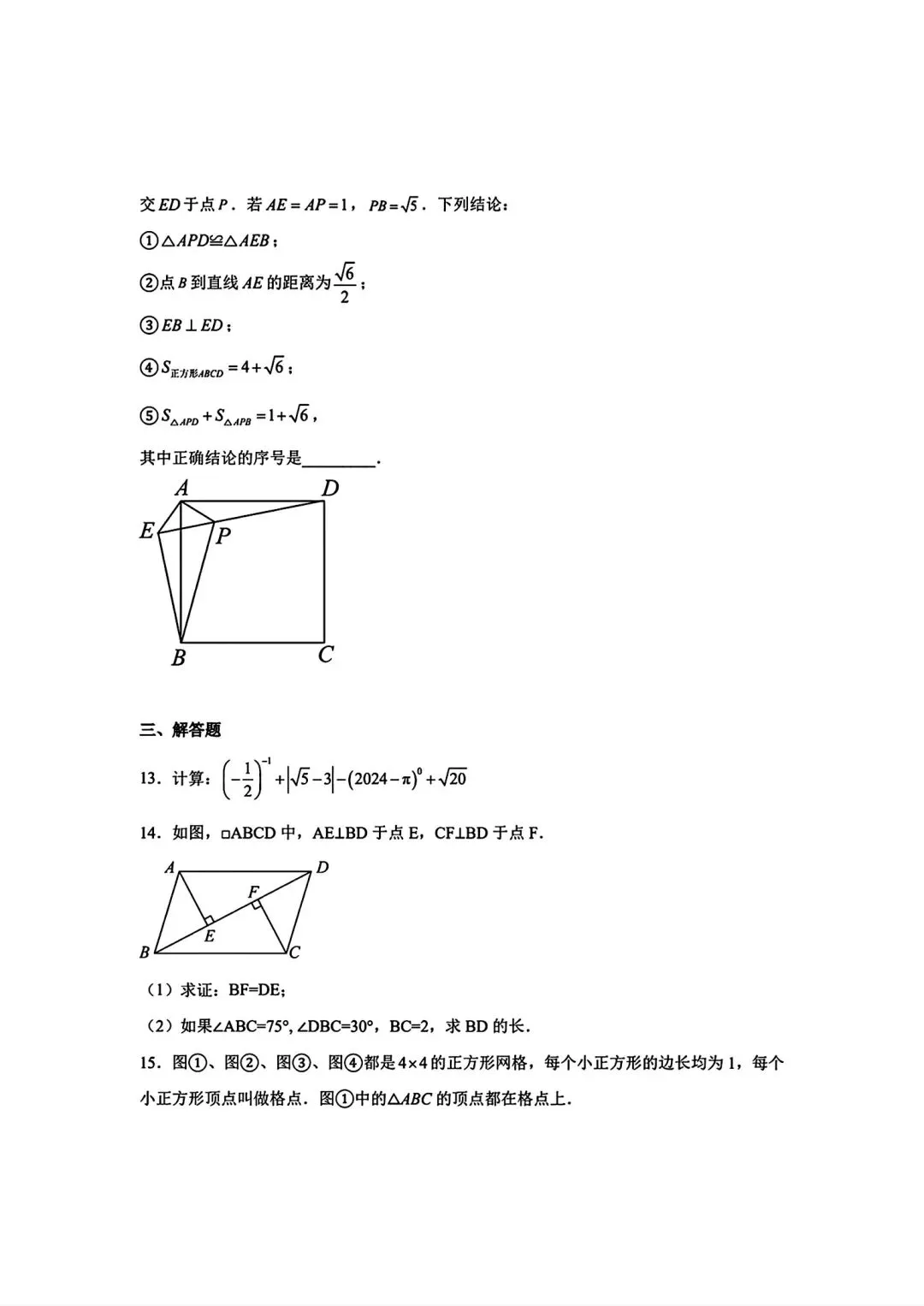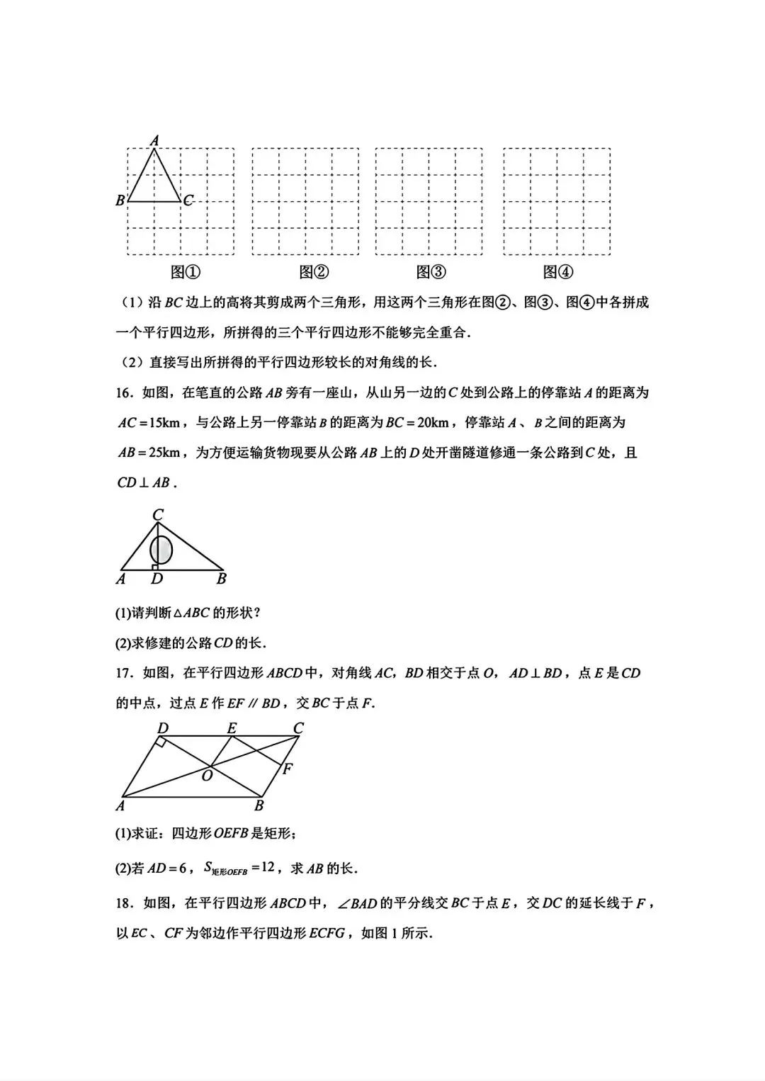 【初二试卷】吉林市九中初二下学期期中数学试卷2024—2025年(含答案)