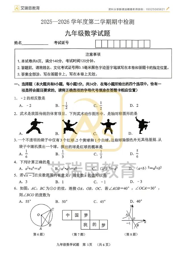 2026年徐州中考县区一模全科试卷