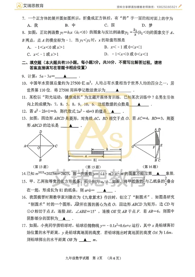 考完啦~2026沛县一模全科真题试卷!