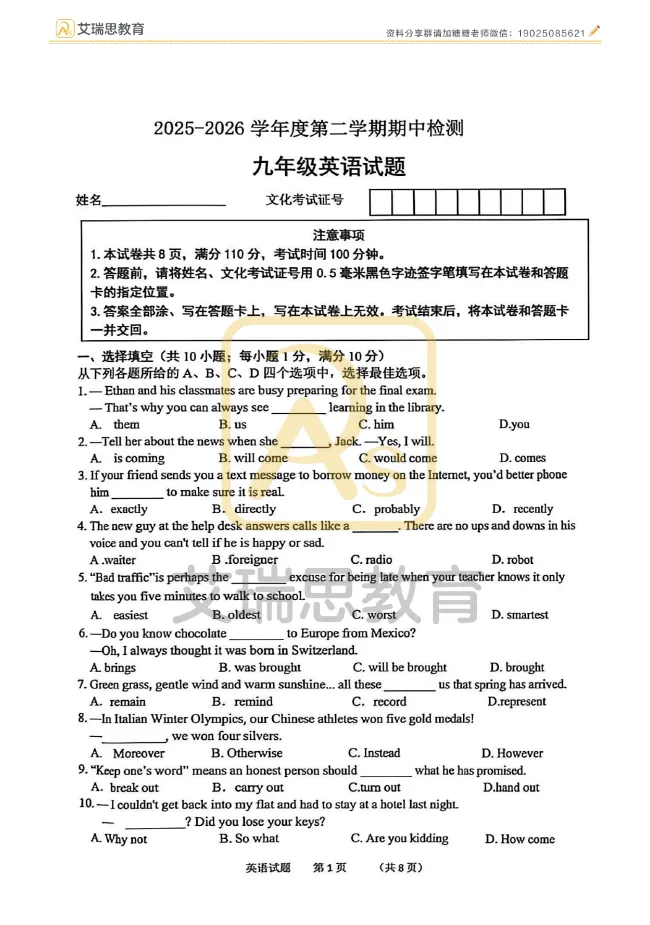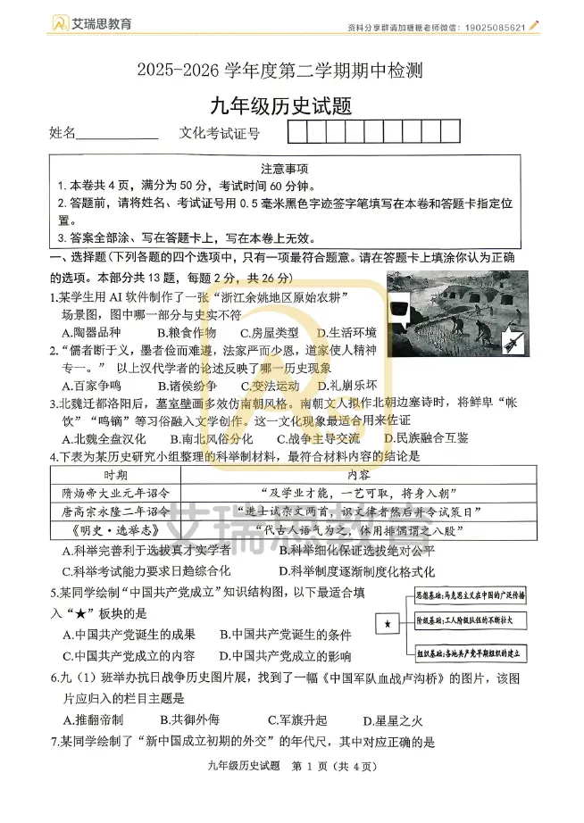 2026春【八下各科】期中试卷新鲜出炉!多版本!趁未考前抓紧练!