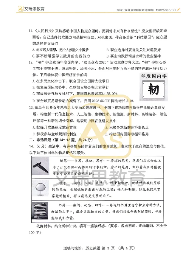 2026年内蒙古包头市高三二模试卷及答案【全套高清版】