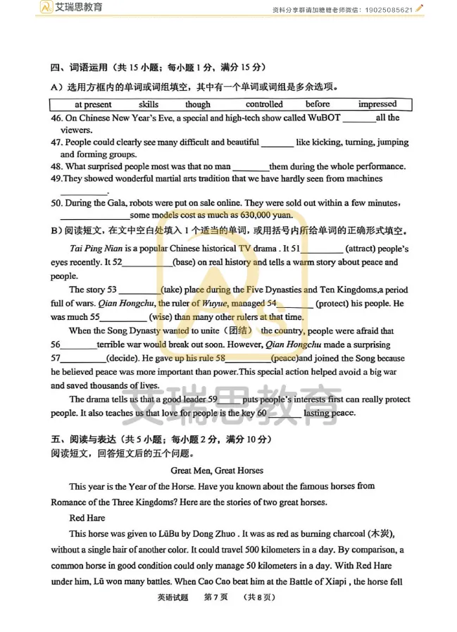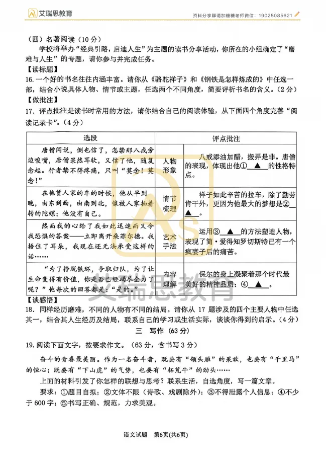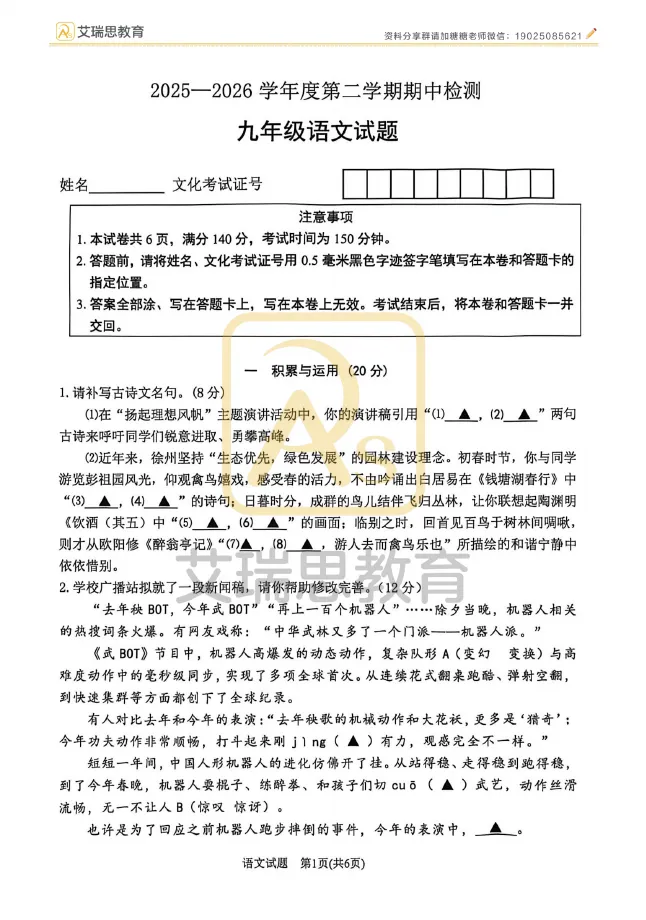 名校15 2026.4中考一模——语文试卷