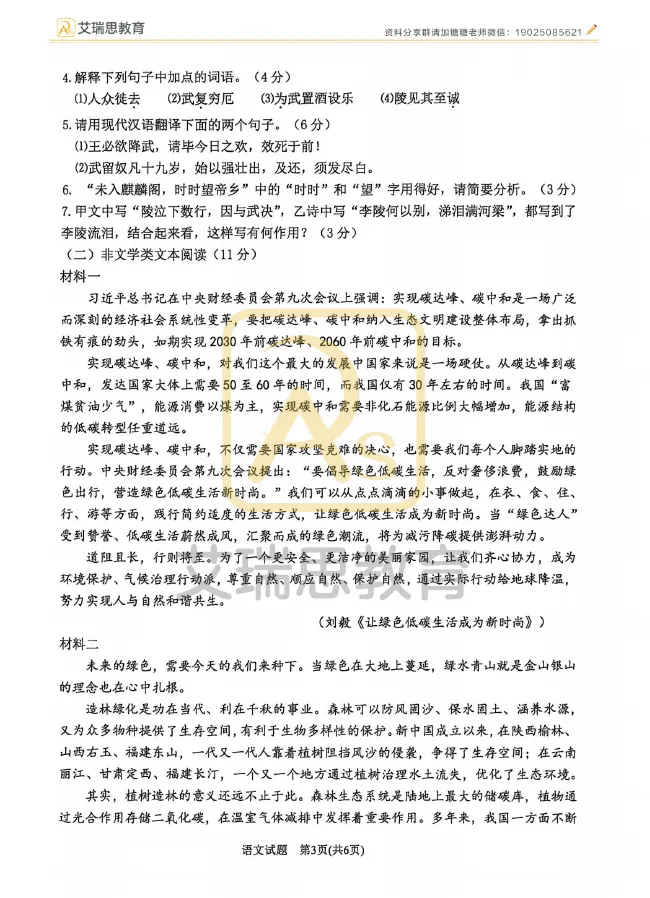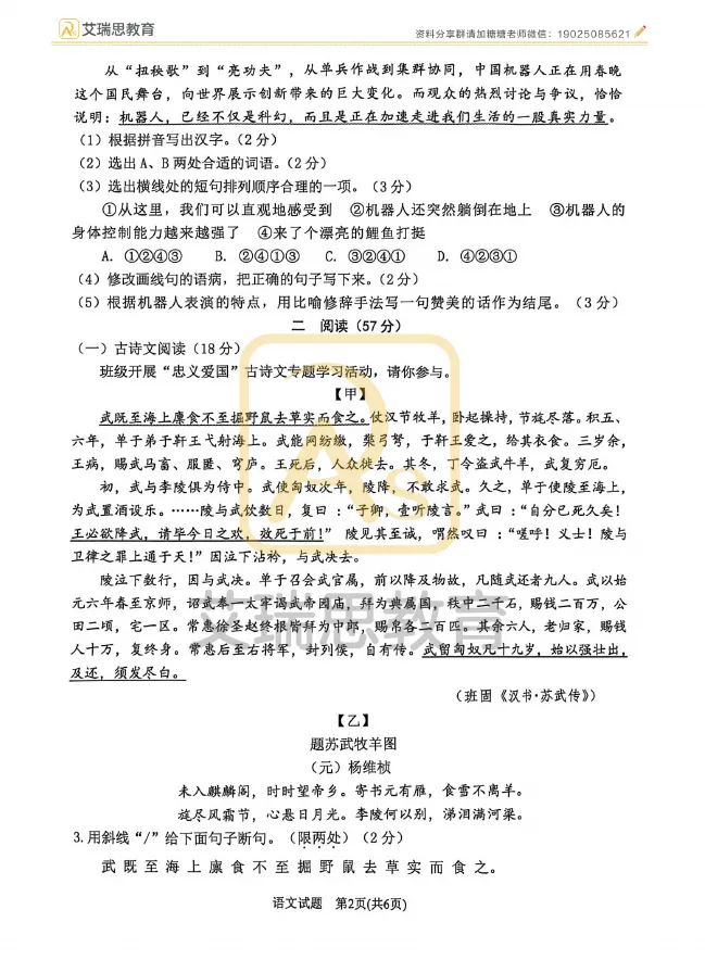 七下语文月考、期中、期末试卷3月月考试卷