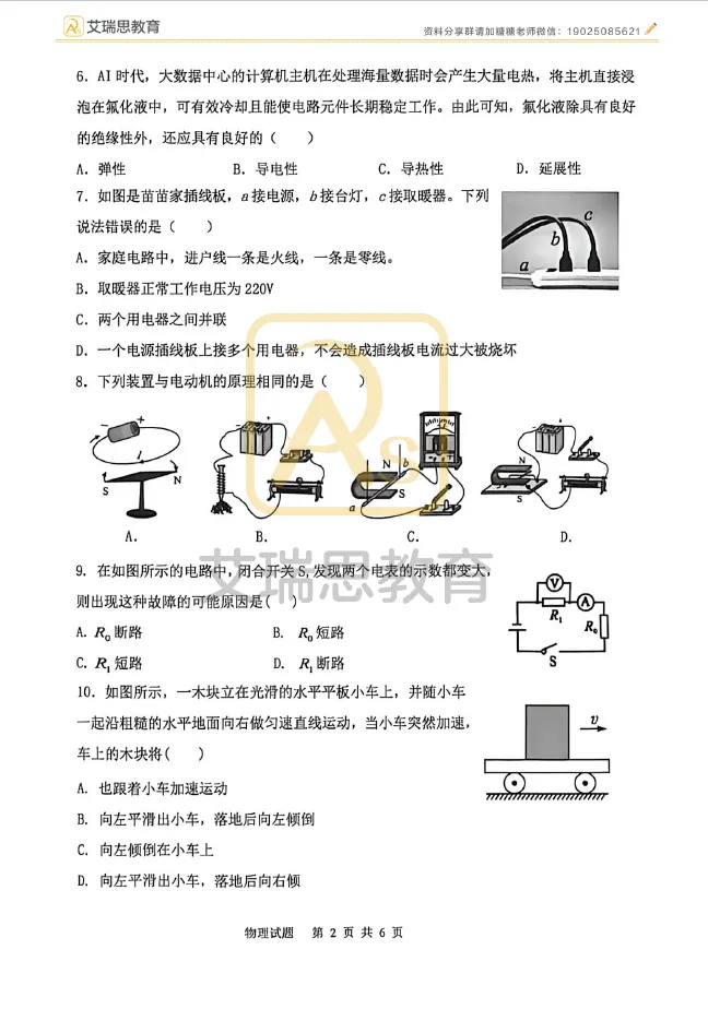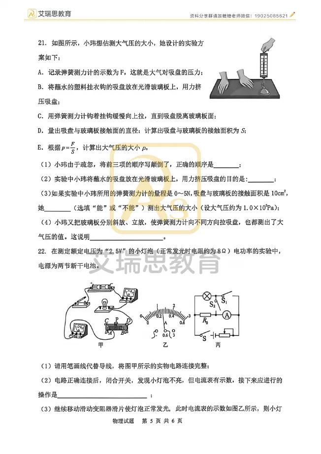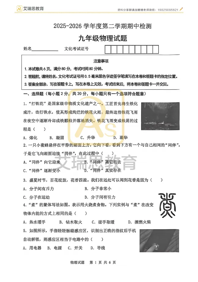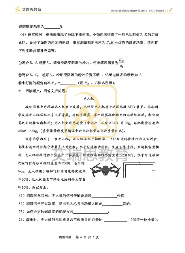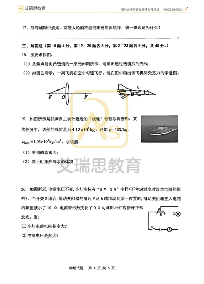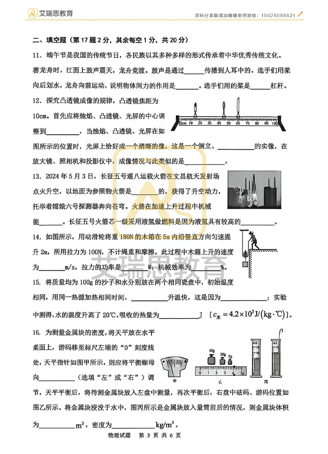 试卷分享|哈17中九年级4月物理试卷