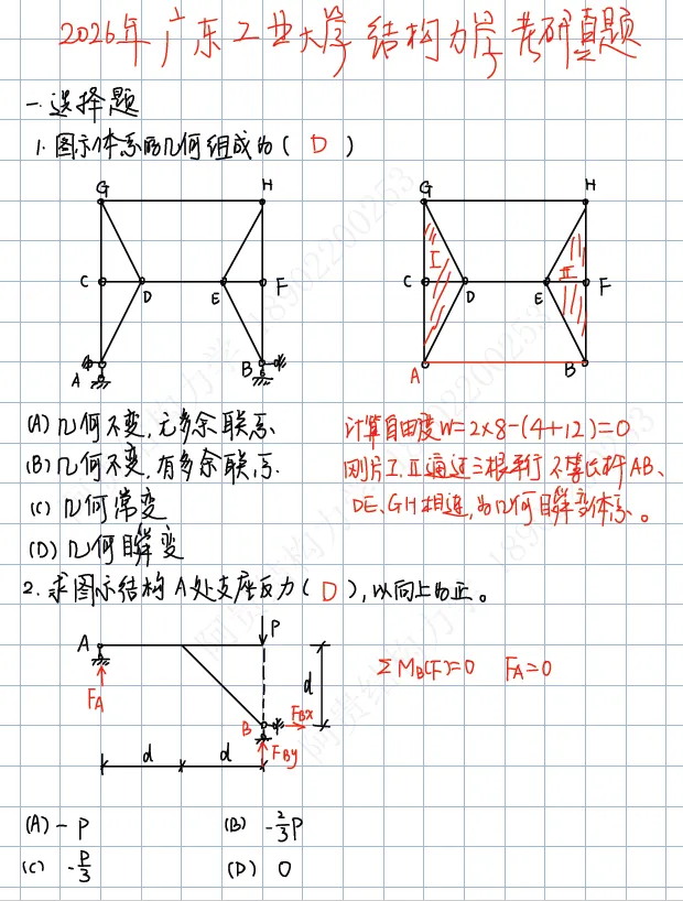 广东工业大学结构力学是土木工程(081400、085901)的专业初试课程,涵盖了结构力学上册内容,难度不大,大概是结构力学上期末考试的内容、范围和难度。